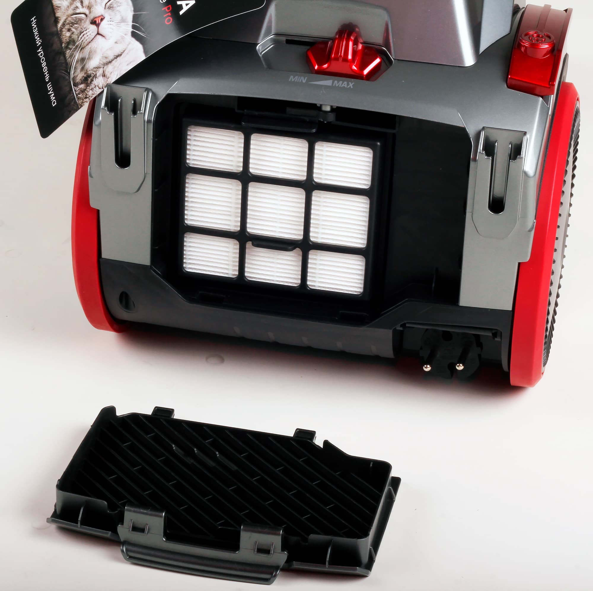 HEPA-фильтр заявлен как моющийся, но долгая история тестирования доказала, что при мытье его характеристики очень быстро ухудшаются. Так что надо вытряхивать и выстукивать.