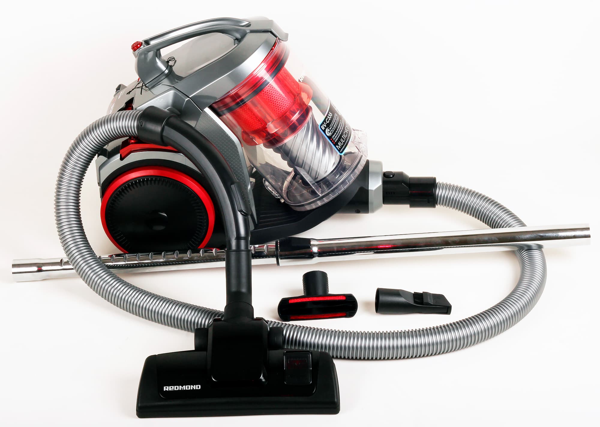 Пылесосу красоты не надо, а вот мощь должна присутствовать. В дизайне Redmond RV-C335 есть обещание мощи, которое сбывается при включении. А вот достаточно ли этот пылесос удобен, маневренен и хорошо ли чистится — об этом вы узнаете из нашей статьи.
