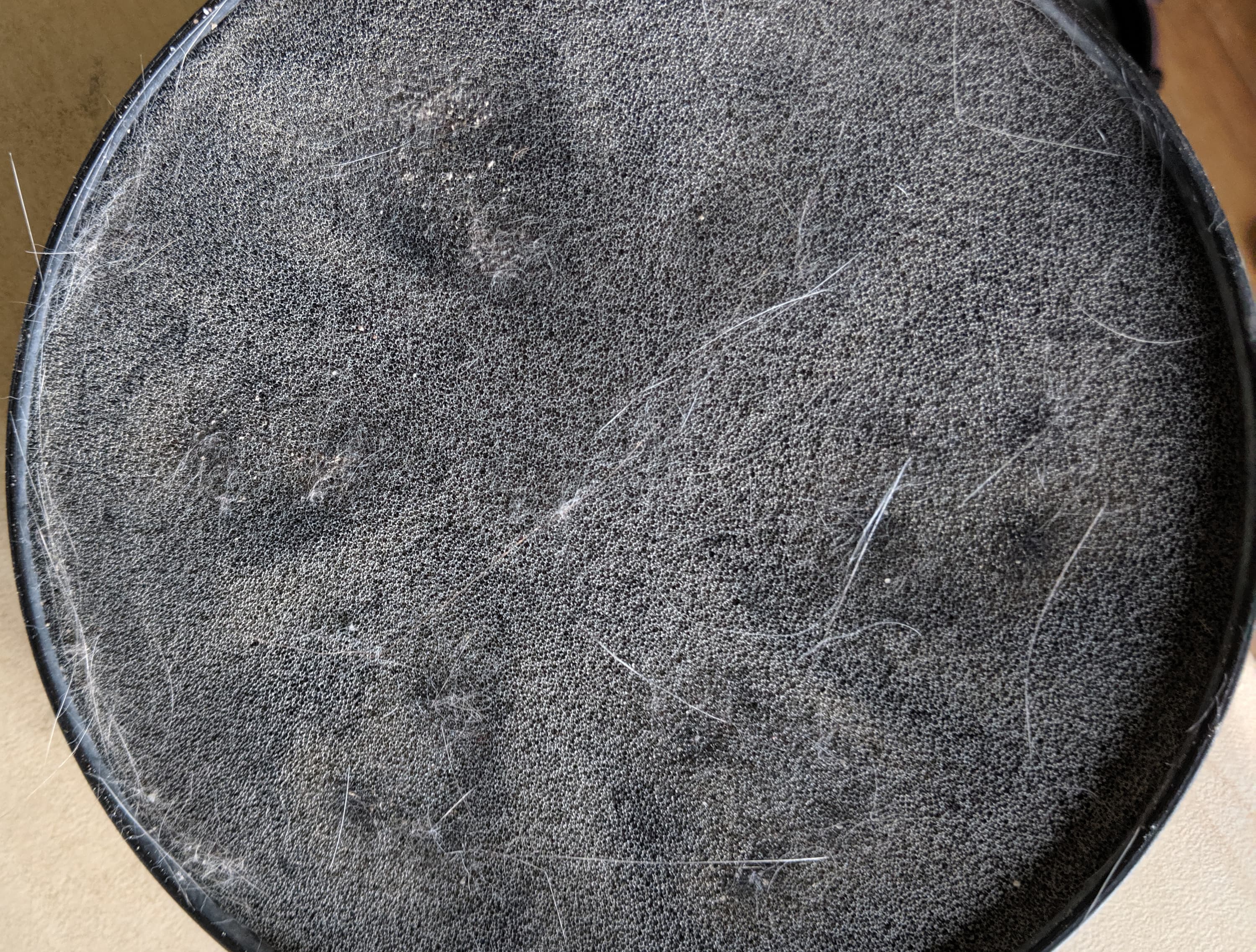 До той части моторного фильтра, которая отвечает за более грубую очистку, дошло несколько десятков волосков и немного пыли, а до внешней — одиночные волоски и самая чуточка пыли. HEPA-фильтр остался практически чистым.