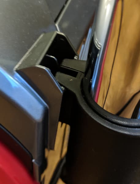 Та часть пылесоса, на которую опирается нижним краем пылесборник с фильтрами, сделана из черного пластика. Когда пылесборник установлен, по бокам от него есть две небольшие полочки, назначение которых непонятно: украшать не украшают, технологически ничего не дают, только пылятся.