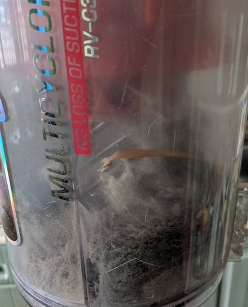 При очистке фильтров пришлось все-таки испачкать руки: часть шерсти зацепилась за выступы в крышке — очищали руками. Остальной крупный мусор охотно покинул пылесборник, не рассыпаясь в разные стороны, и практически весь оказался в помойном ведре.