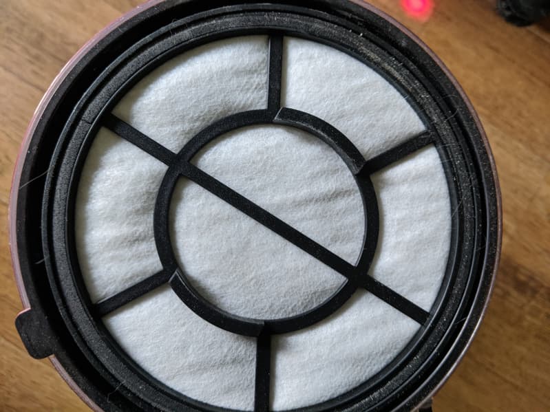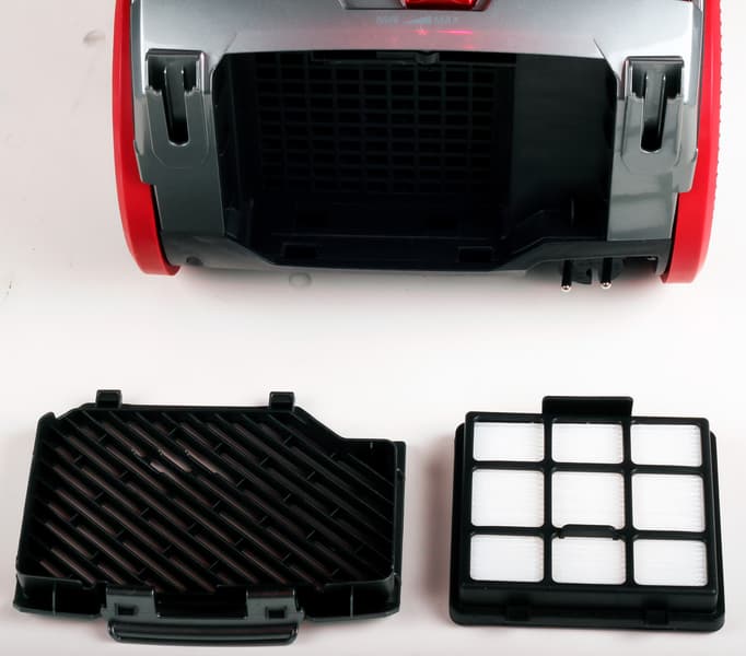 Заявленный производителем HEPA-фильтр расположен в конце технологической линии по обработке всасываемого воздуха. Сначала наиболее крупный мусор оседает в фильтре-циклоне, затем крупная пыль собирается в моторном фильтре, остатки задерживаются фильтром предварительной очистки, а до HEPA доходят совсем уж мелкие остаточки.
