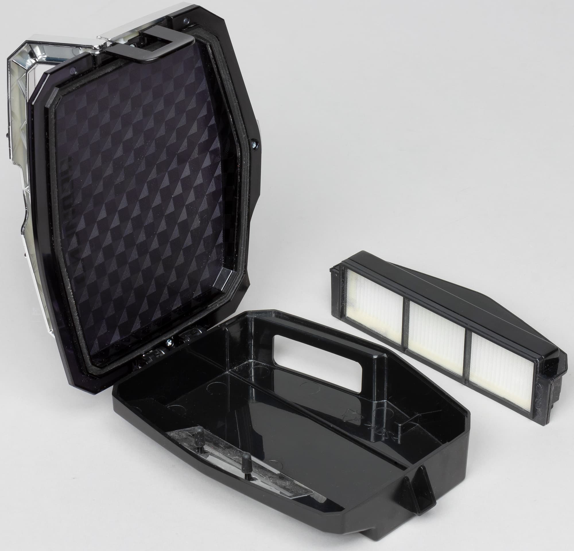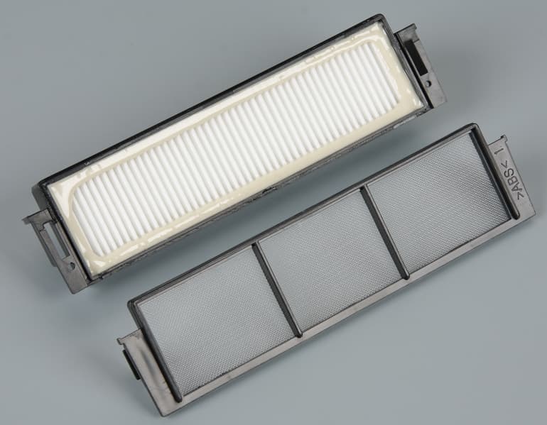 При необходимости можно извлечь блок с фильтрами и вытянуть из него рамку с сеточкой, чтобы отдельно почистить ее и складчатый фильтр.