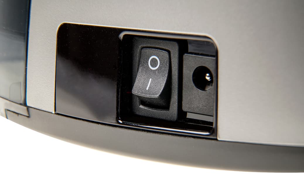 Выключатель устройства расположен на боковой стороне корпуса. Рядом с выключателем — разъем для зарядки пылесоса напрямую, минуя базу.