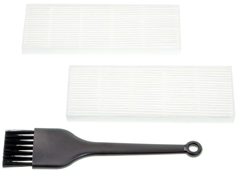Запасные части и расходные материалы в комплекте поставки, таким образом, оказались представлены сменным фильтром, вторым комплектом боковых щеточек (первый комплект пользователь устанавливает сразу) и сменной тряпкой (насадкой) для влажной уборки.