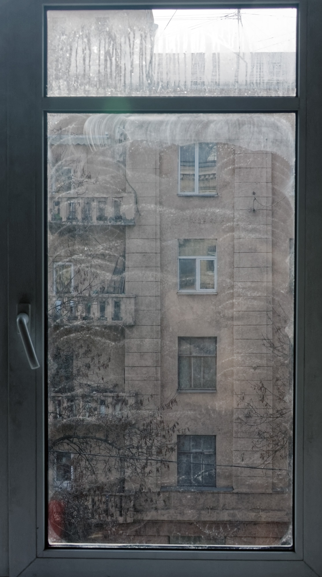 Наше второе тестовое окно располагалось в том же доме, но выходило во двор. Оно также простояло грязным около 6 месяцев, однако степень его загрязнения оказалось значительно ниже. Погода на этот раз оказалась пасмурной, поэтому загрязнение на фотографиях видно хуже. Вот так окно выглядело изначально.
