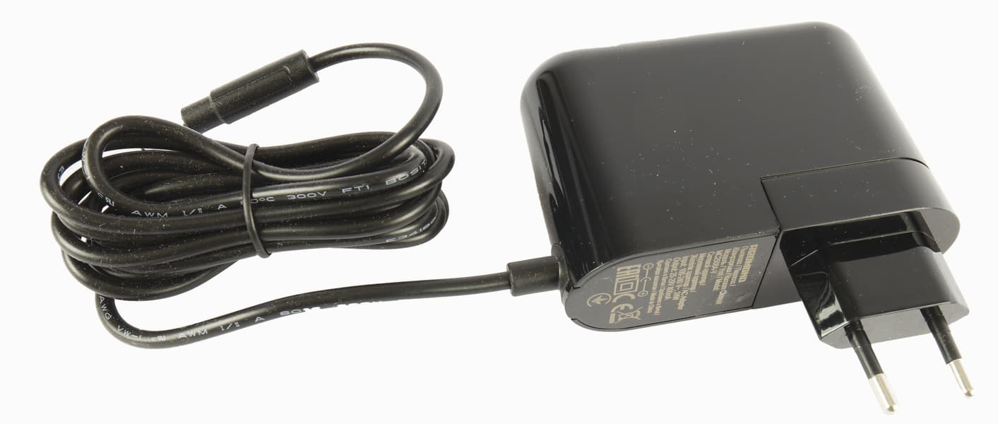 Адаптер питания обеспечивает, согласно маркировке, напряжение в пределах 25—29 В и силу тока в 0,8 А.