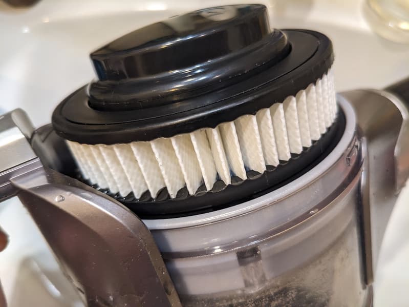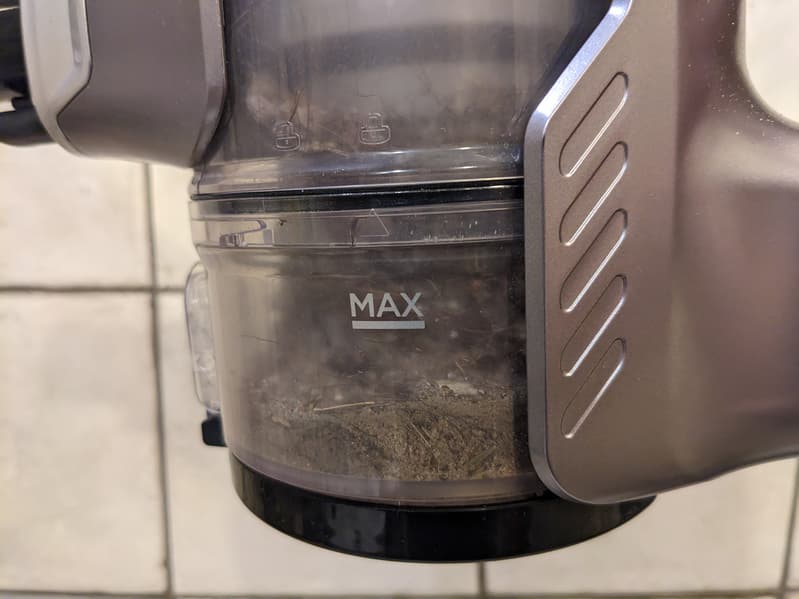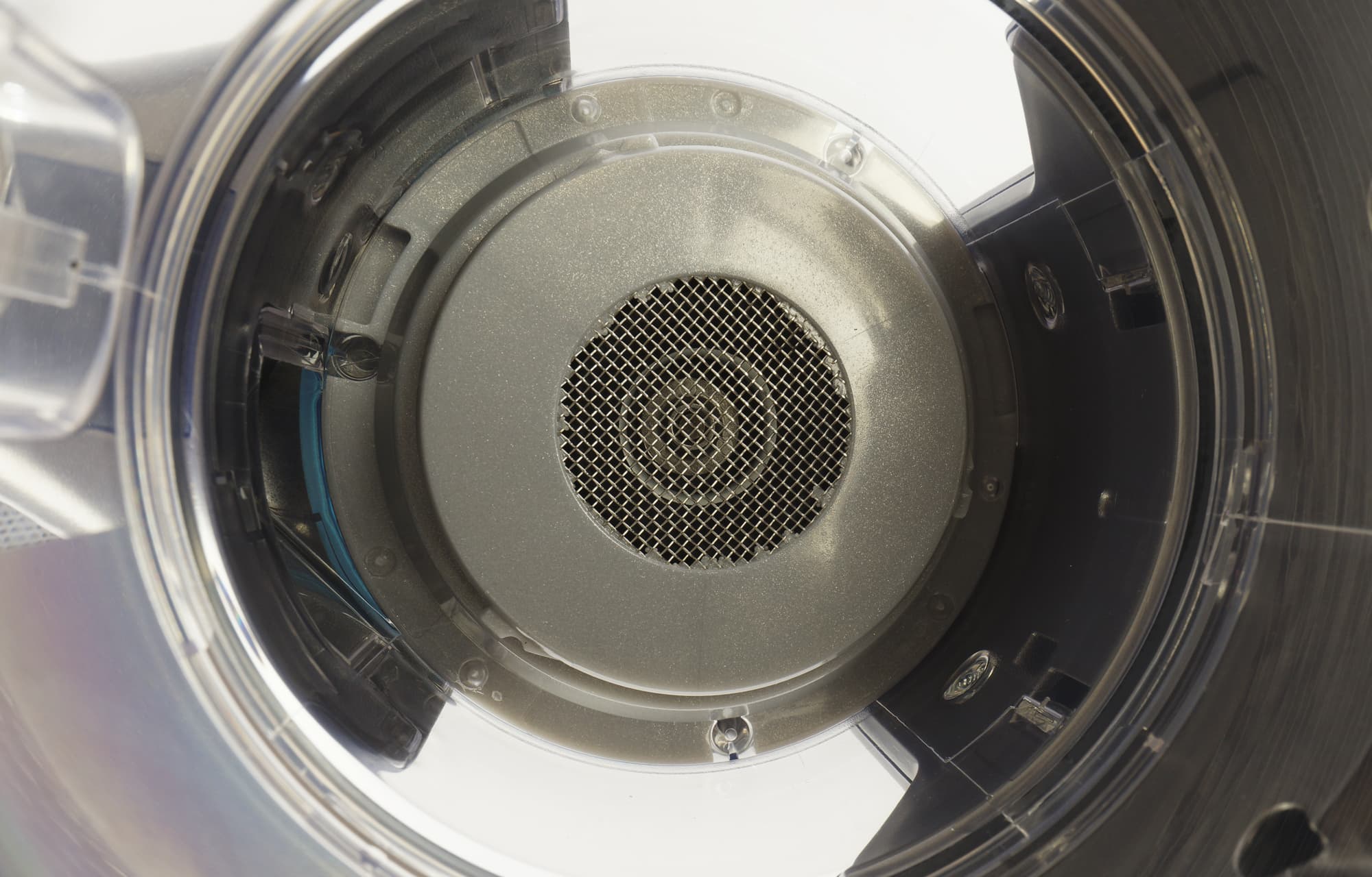 Выпускной HEPA-элемент остается чистым и белоснежным. Хотя полная чистка мусоросборника и заставила нас замарать руки, общее качество фильтрации мы оцениваем как хорошее.