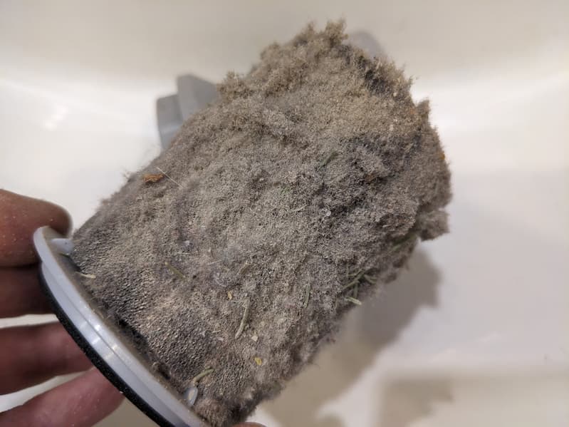 Следствием этого становится избыточное загрязнение предварительного поролонового фильтра — на нем скапливается заметное количество мусора.