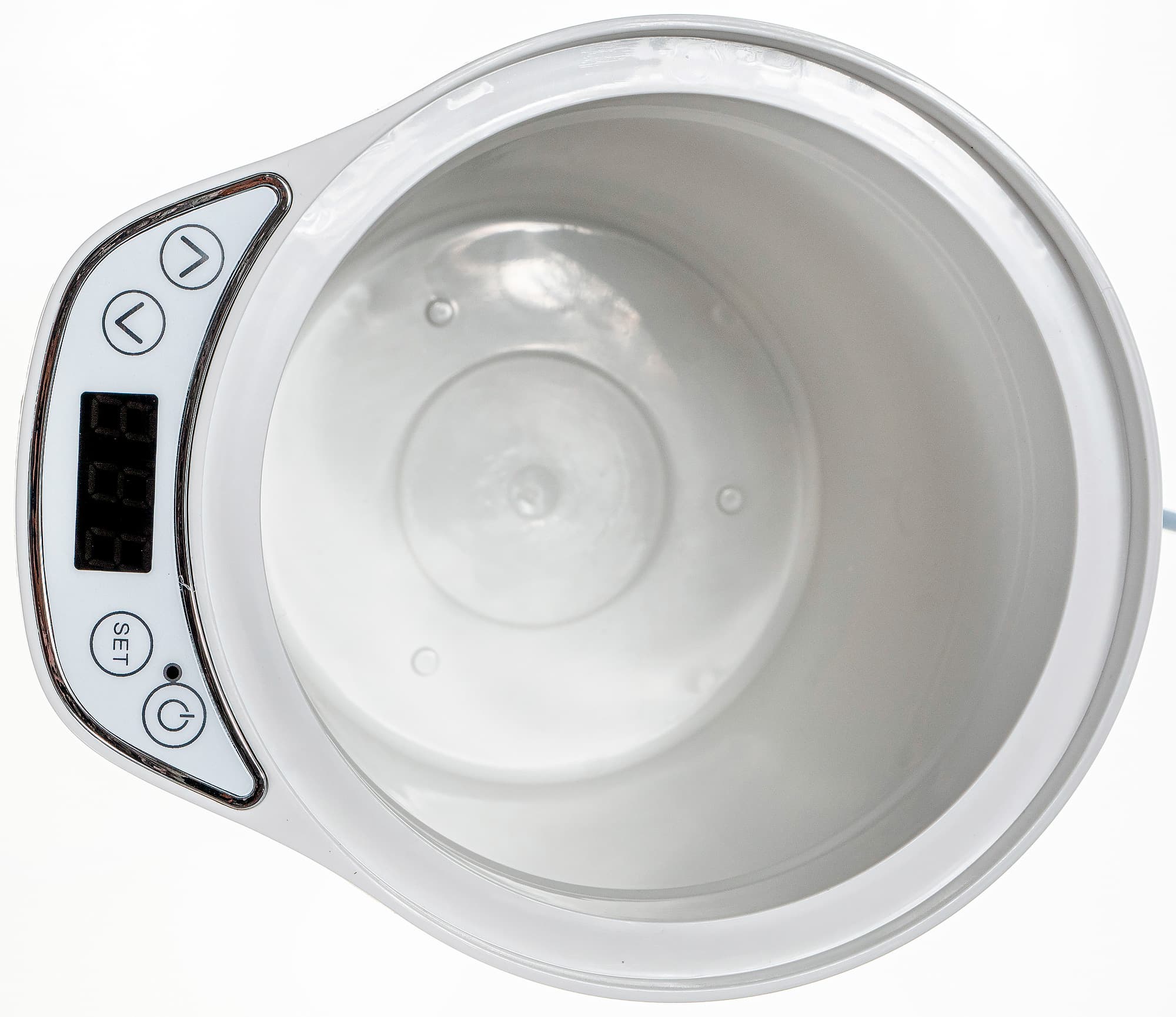 Внутри прибор представляет собой белый пластиковый сосуд, куда так и хочется налить молока, не проверив, поставлен ли туда стакан-вкладыш. При эксплуатации надо будет внимательнее отнестись к проверке, все ли на месте.