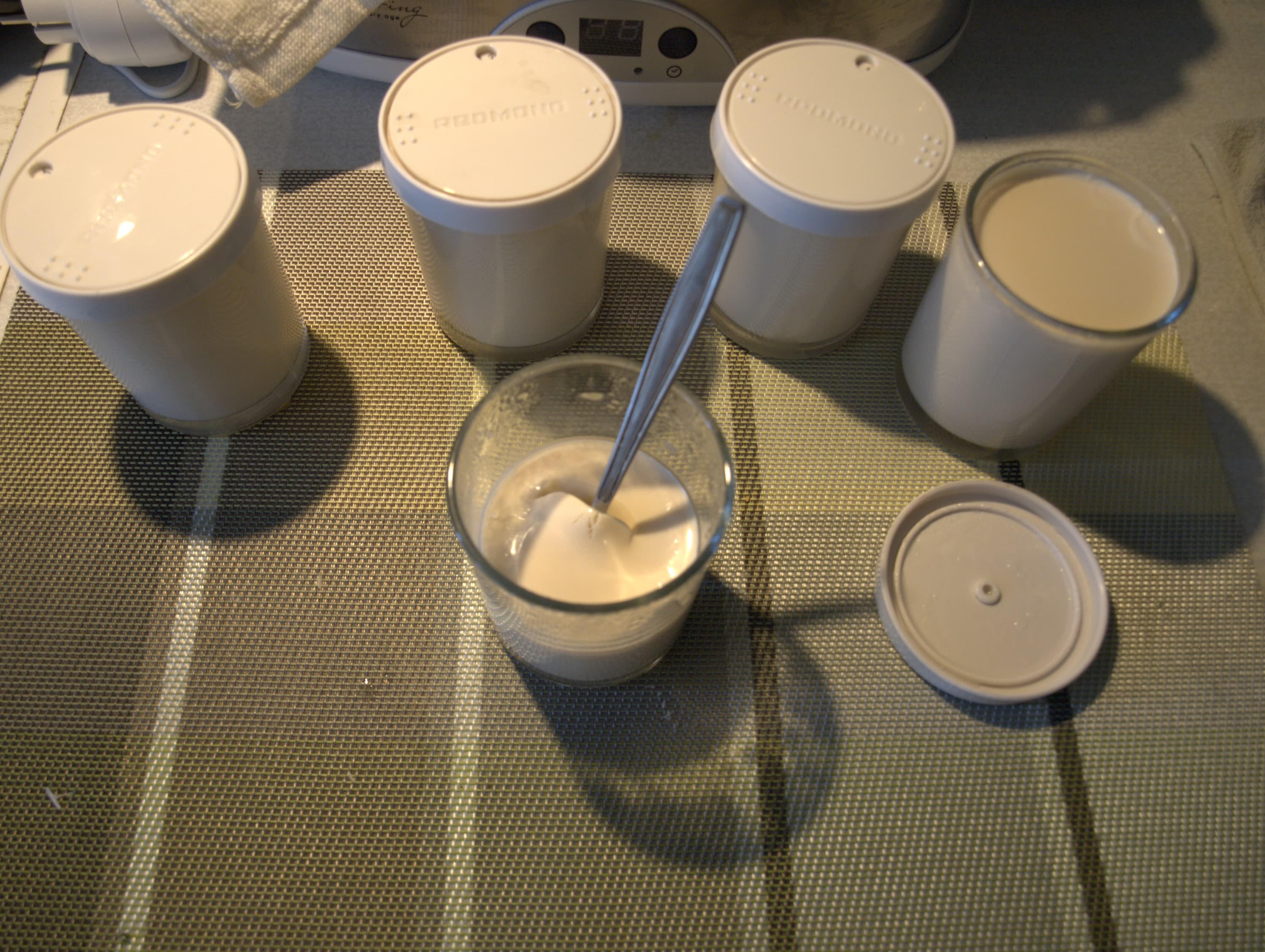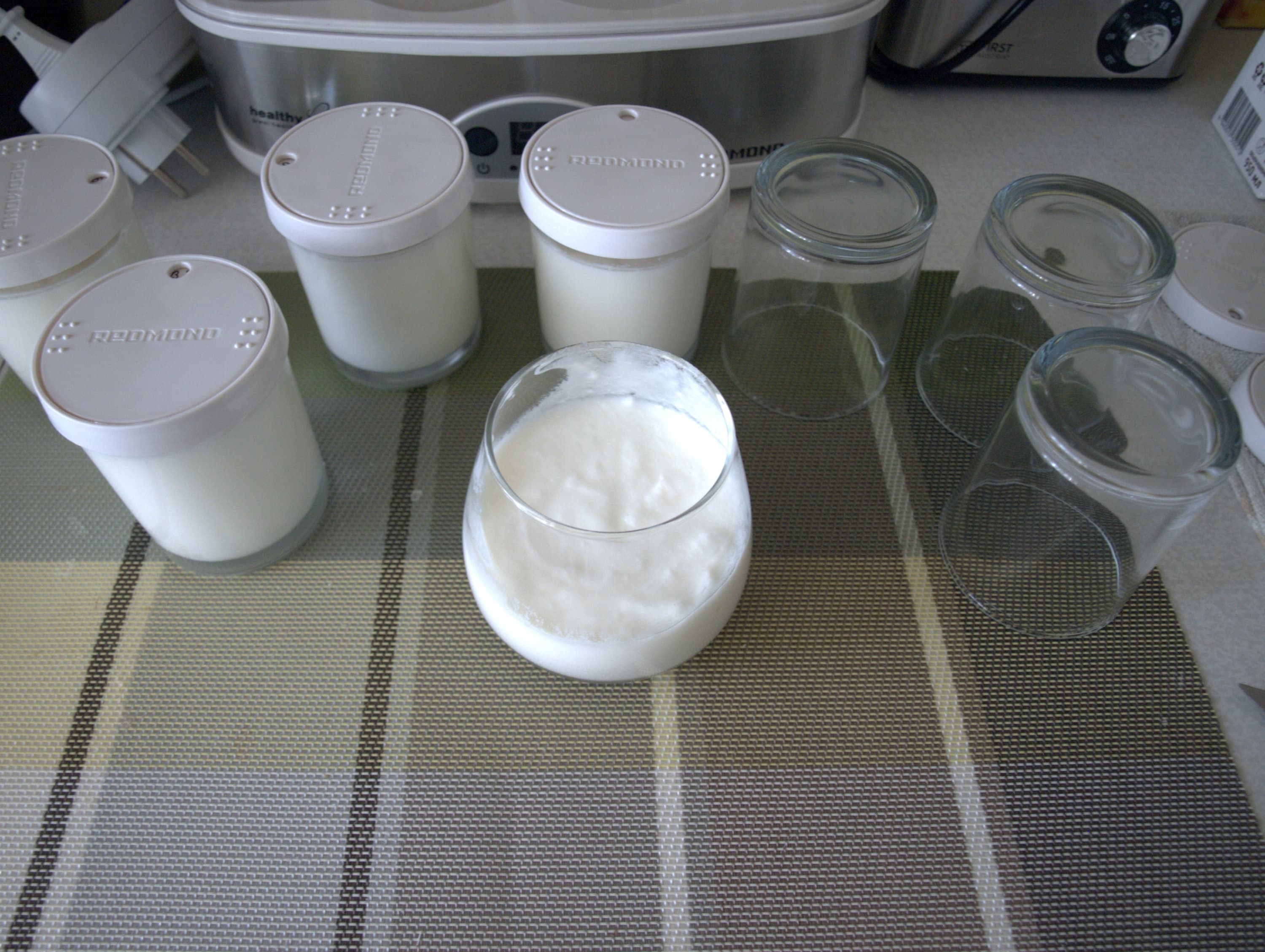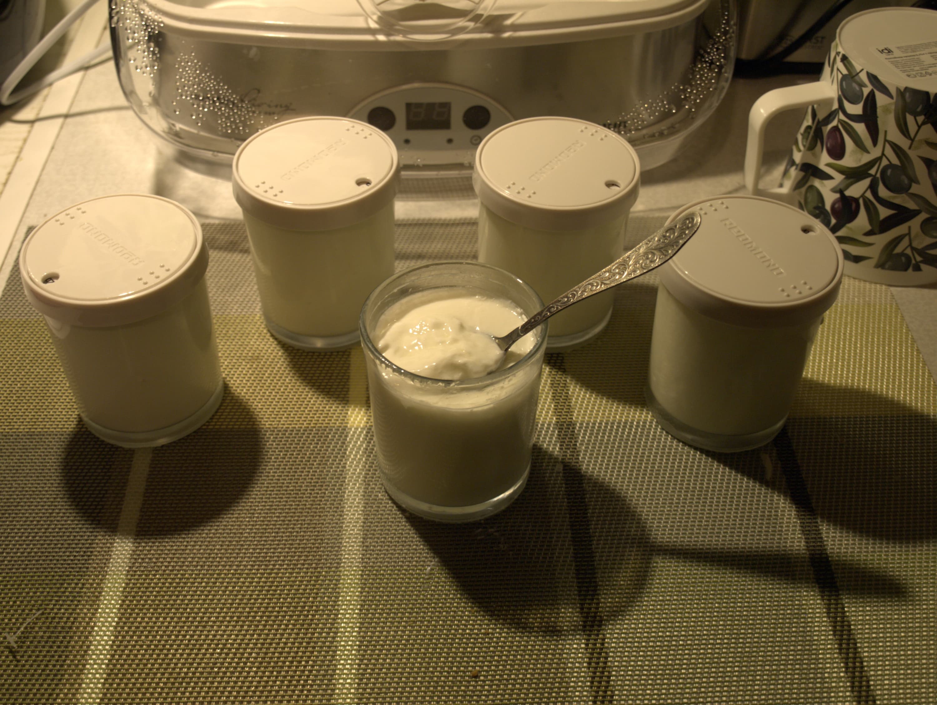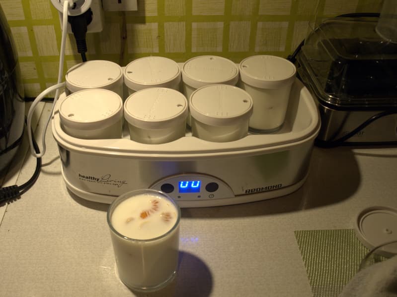Красивый, простой прибор отлично вписался в интерьер, не занял много места и быстро стал привычным. Работает он бесшумно, хитрых особых условий для себя не требует: ровное место на столе и доступ к розетке. Поле для кисломолочных экспериментов бесконечное, но лежит вне компетенций прибора. Выбор закваски, способов закваски (живым или сухой смесью), обработки продукта (творог, например, еще нужно сцедить) никак не связан с Redmond RYM-M5401-E.