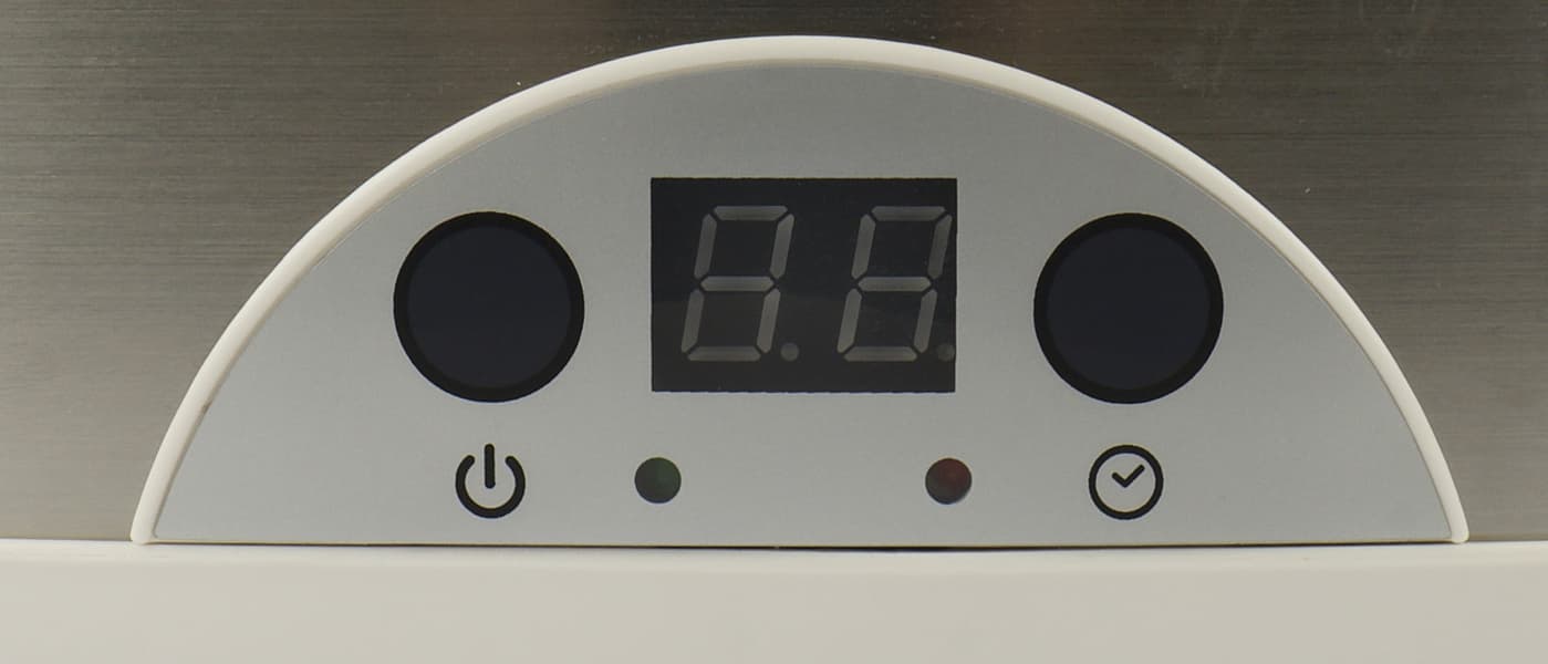 Светодиодная панель управления расположилась на лицевой части прибора. Тут всё предельно просто: кнопка запуска/остановки процесса, индикатор рабочего режима, дисплей, кнопка установки времени (с разбегом в 1 час). Заполняем баночки, ставим внутрь, накрываем прозрачной крышкой, включаем прибор, устанавливаем нужное время, жмем пуск. Пока прибор нагревается индикатор мигает, минут через 15-17 загорается ровный зеленый свет индикатора — температура установилась. Дисплей ведет обратный отсчет, помогая разобраться, сколько часов еще будет сквашиваться продукт. Об окончании рабочего режима йогуртница дает знать коротким, тонким звуковым сигналом.