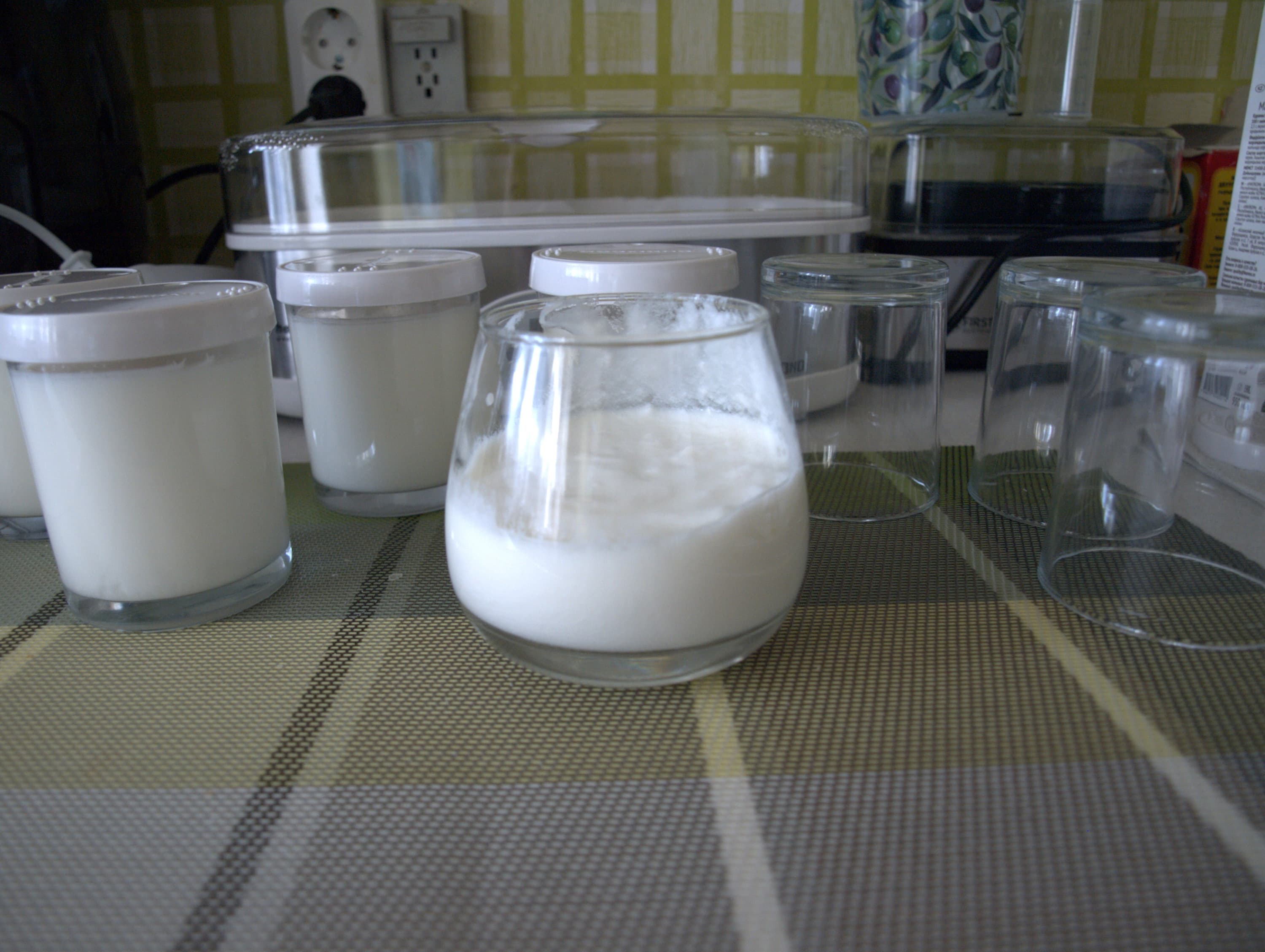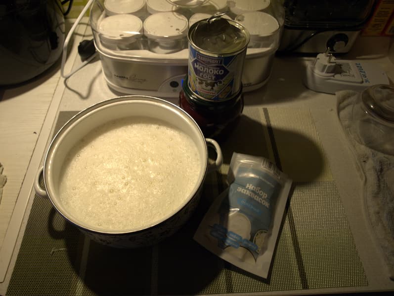 Большая часть вариантов готовится по схожей схеме: молоко нужно нагреть, добавить закваску, разлить по банкам и установить время для закваски. На ряженку вам потребуется всего 7 часов, а вот сложные йогурты и соусы устанавливаются на 12 часов.