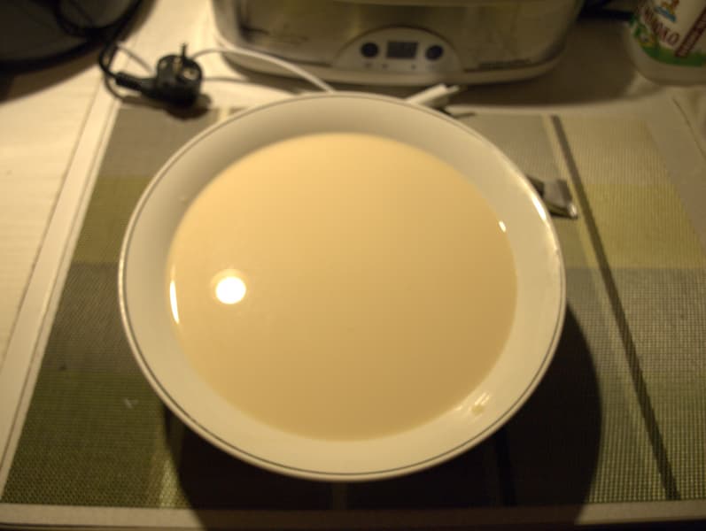 Логика приготовления напоминает предыдущий опыт, вся разница в виде молока. Теперь берем топленое и сухую закваску для ряженки (они продаются отдельно и в наборах). Топленое молоко комнатной температуры смешиваем с закваской, смесь устанавливаем в прибор на 7 часов, потом 3 часа охлаждаем в холодильнике.