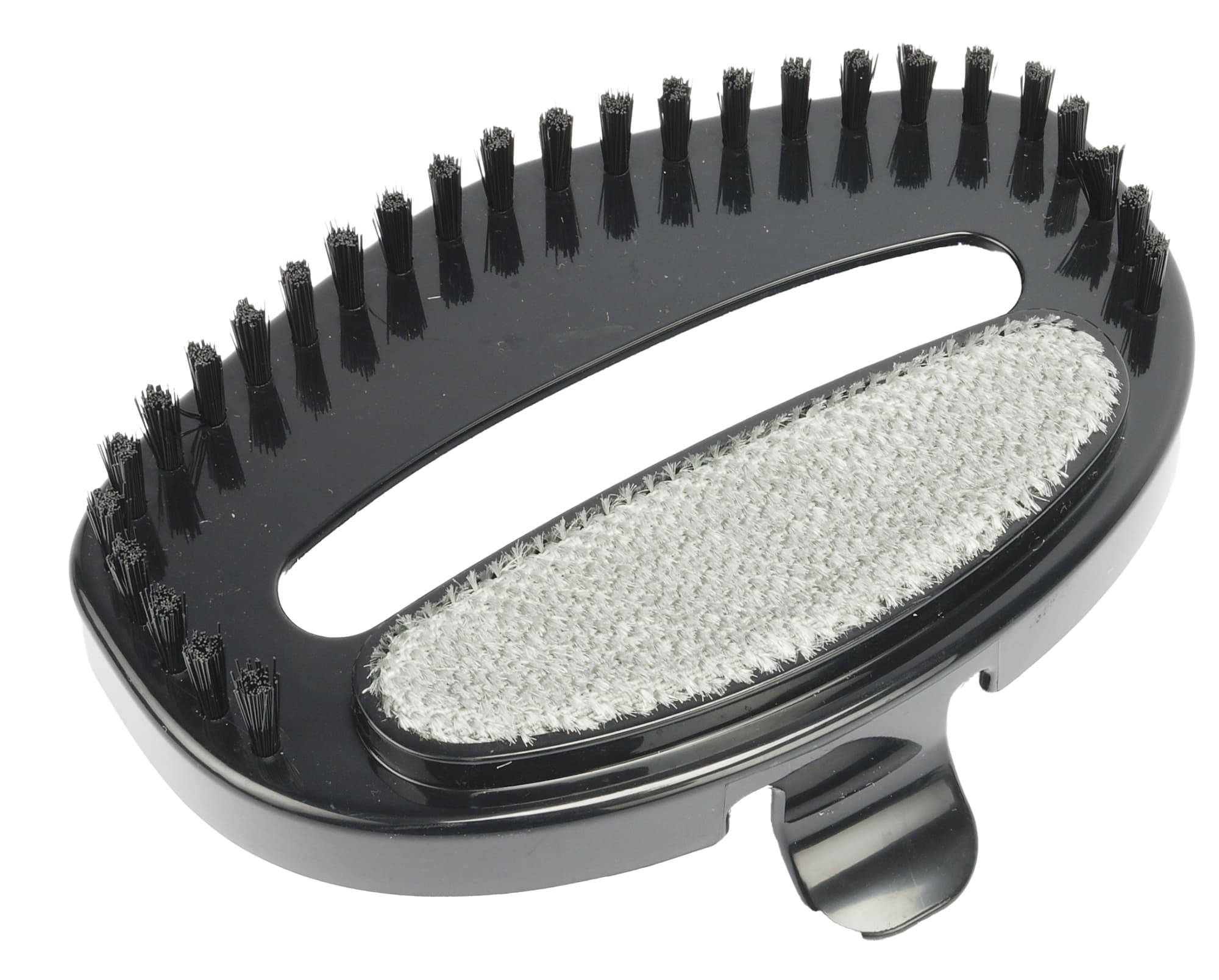 В комплект отпаривателя входит насадка-щетка из пластика с умеренно жестким ворсом и небольшой подушечкой из специальной ткани с мягким ворсом для чистки одежды и предметов мебели.