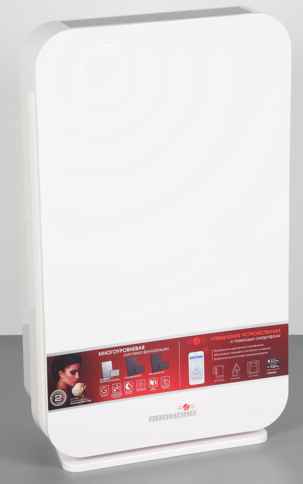 Очиститель воздуха Redmond SkyAirClean 3706S работает относительно тихо, но при этом имеет достаточную для средних размеров жилого помещения производительность. Фильтр HEPA очищает воздух от самых мелких частиц, а фильтр из активированного угля устраняет из воздуха вредные и/или имеющие неприятный запах загрязняющие вещества. В Redmond SkyAirClean 3706S нам понравились ненавязчивый дизайн, удобство в обслуживании, наглядный индикатор чистоты воздуха, автоматический режим работы, индикатор необходимости замены фильтров, таймер на отключение, специальный ночной режим и режим быстрой очистки, а также удобная ручка для переноски. Не понравилось отсутствие ножек и индикации подключения к электрической сети. Любители гаджетов и современных технологий наверняка обрадуются возможности управления очистителем со смартфона или с планшета, как находясь в одном помещении с очистителем, так и из любой точки мира, где есть интернет.