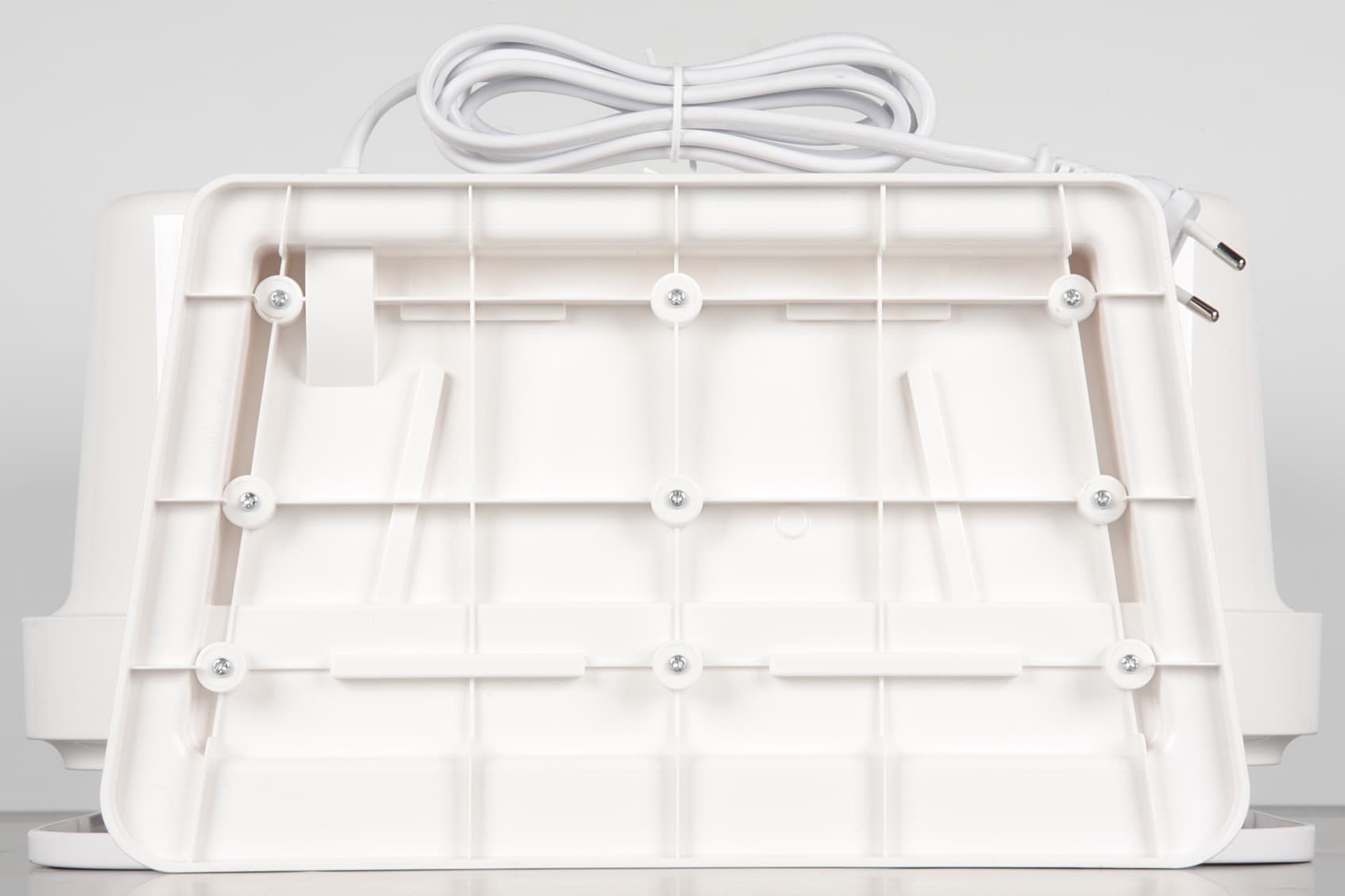 Кабель питания не отсоединяемый, его длина составляет 1,9 м. Излишки кабеля можно намотать на нижнюю часть корпуса.