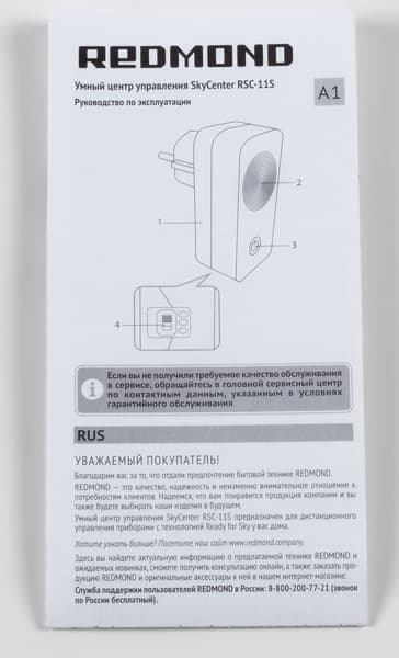 На противоположной стороне нарисованы домашние приборы, которые можно соединять со смартфоном через RSC-11S: телевизор, торшер, утюг (господи, неужели теперь не надо будет волноваться, выключен ли он!), обогреватель, чайник, кондиционер и мультиварка. Разумеется, на коробке подчеркнуто, что вся эта техника должна быть фирмы Redmond.