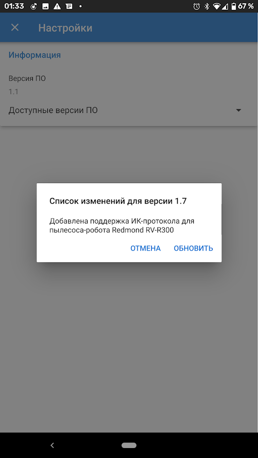 Скачивание и обновление прошивки длилось около семи минут. После завершения обновления можно начинать работу с пультом.