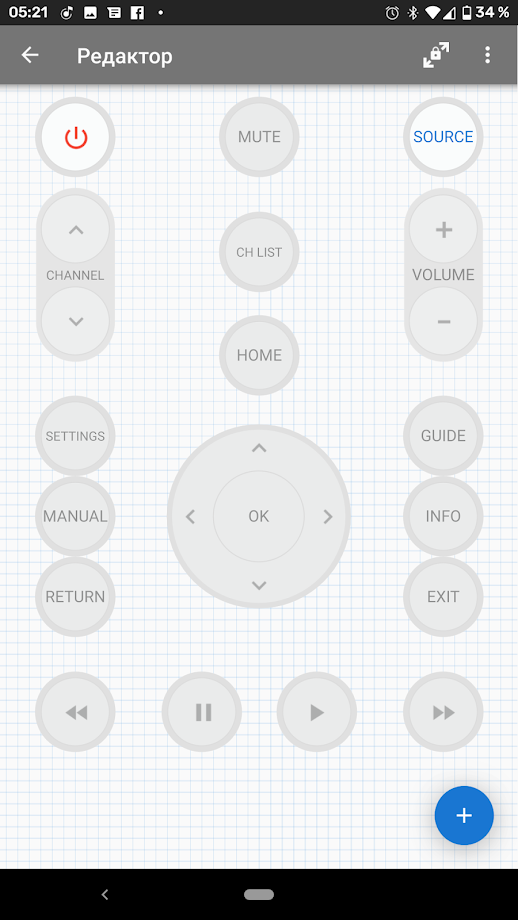 Мы даем имя нашему виртуальному пульту и добавляем первую кнопку. Редактор кнопок предлагает несколько различных вариантов их внешнего вида, позволяя в том числе создавать и сгруппированные — регуляторы уровня громкости, селекторы выбора каналов или навигацию по меню.