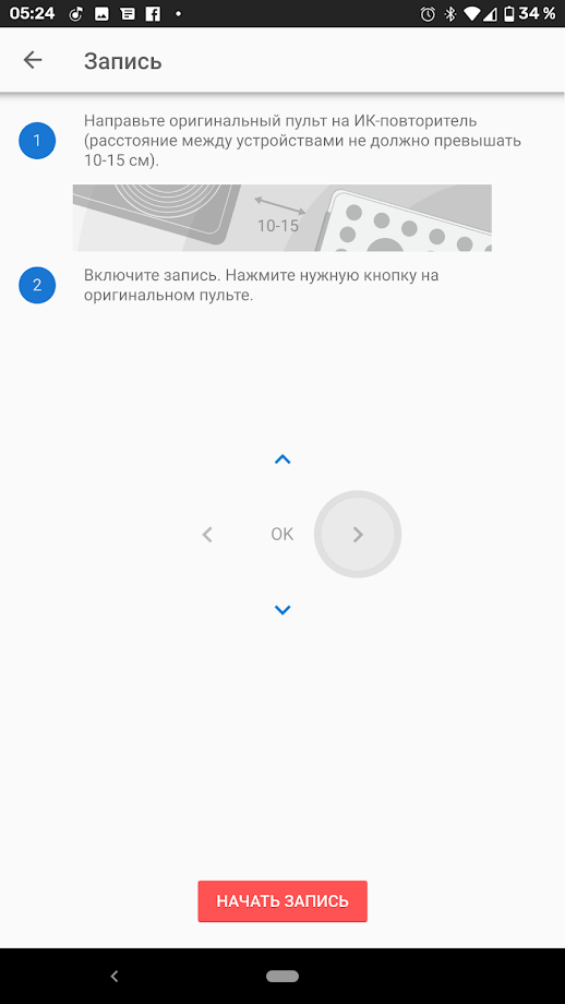 Следуя информации на экране, успешно произвели синхронизацию пульта со смартфоном.