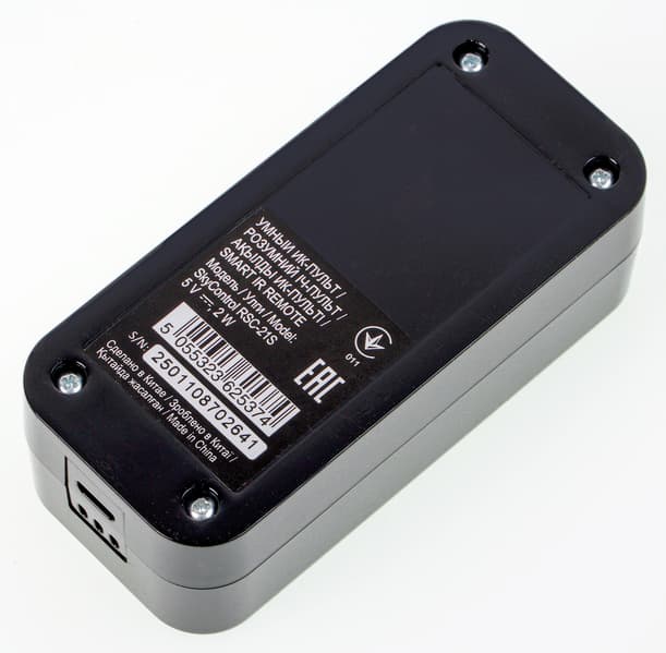 Пульт питается от пятивольтового разъема Micro-USB, разъем для него имеется на другом торце корпуса. Блок питания в комплект устройства не входит.