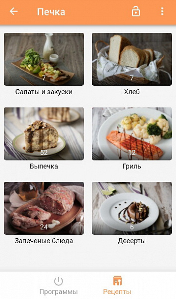 У нас данное приложение уже было установлено, поэтому мы лишь повторили попытку соединения. Прибор тут же отобразился в списке подключенных устройств, а на экране телефона появилось главное меню с двумя вкладками: программы и рецепты.