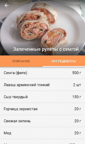 В самом рецепте также содержится две вкладки: описание и ингредиенты. Рецепт не запускает процесс готовки, как это возможно у мультипекарей Redmond.