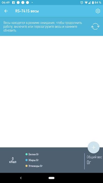 К сожалению, с первого раза заставить устройство корректно работать с приложением нам не удалось: при попытке взвесить любой продукт через две-три секунды связь с весами рвалась, и приложение предлагало нам перезагрузить устройство.