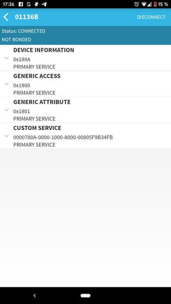 В длинном списке доступных устройств мы находим наши весы (на скриншоте они видны как 01136B) и нажимаем на Connect.