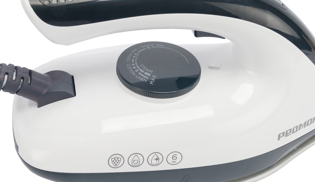 Керамическое покрытие подошвы утюга хорошо скользит по ткани, не цепляется и не «тормозит». Узкий носик позволяет аккуратно проходить сложные зоны — область пуговиц, складки, а специальный желобок действительно помогает обходить фурнитуру, не замедляя работу.