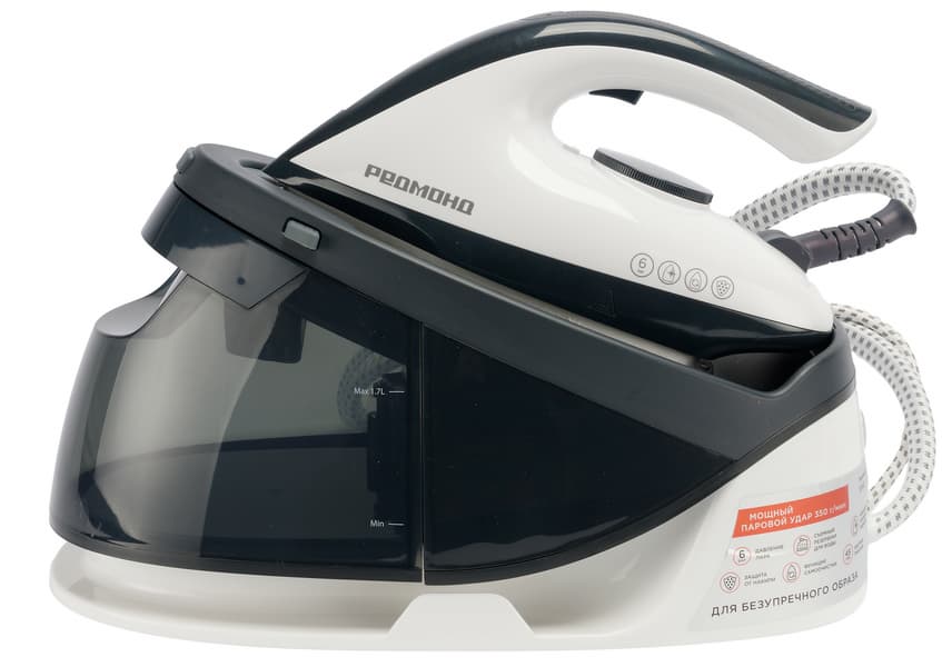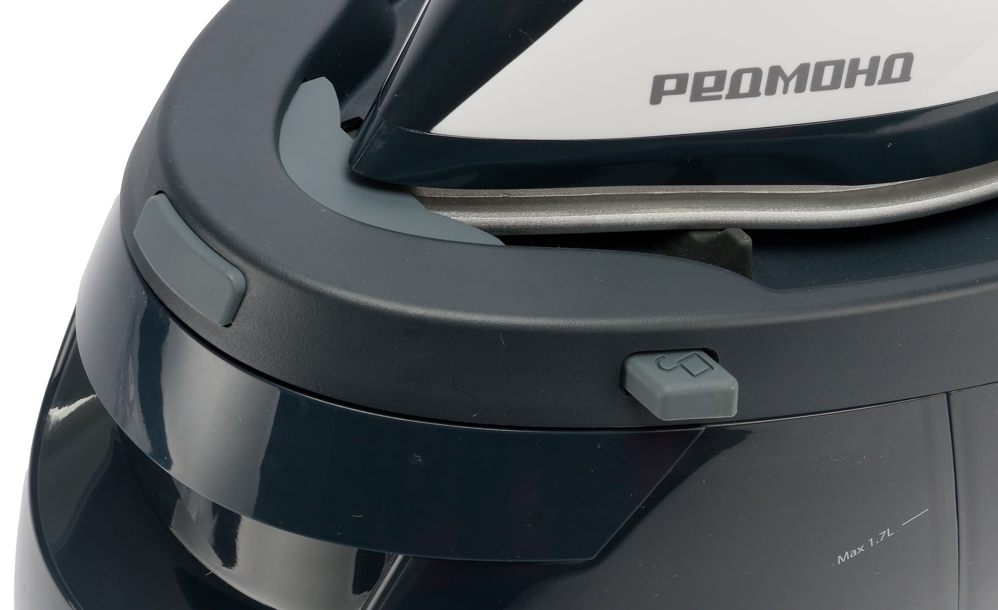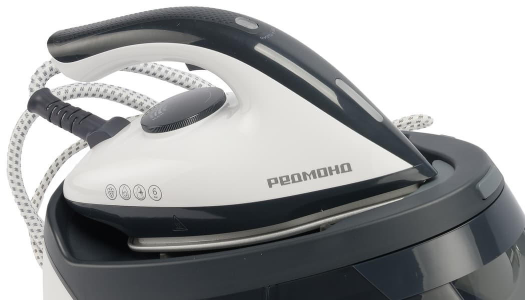 Управляется Redmond SS1622 кнопкой включения на корпусе базы, колесом-регулятором и двумя кнопками на утюге.