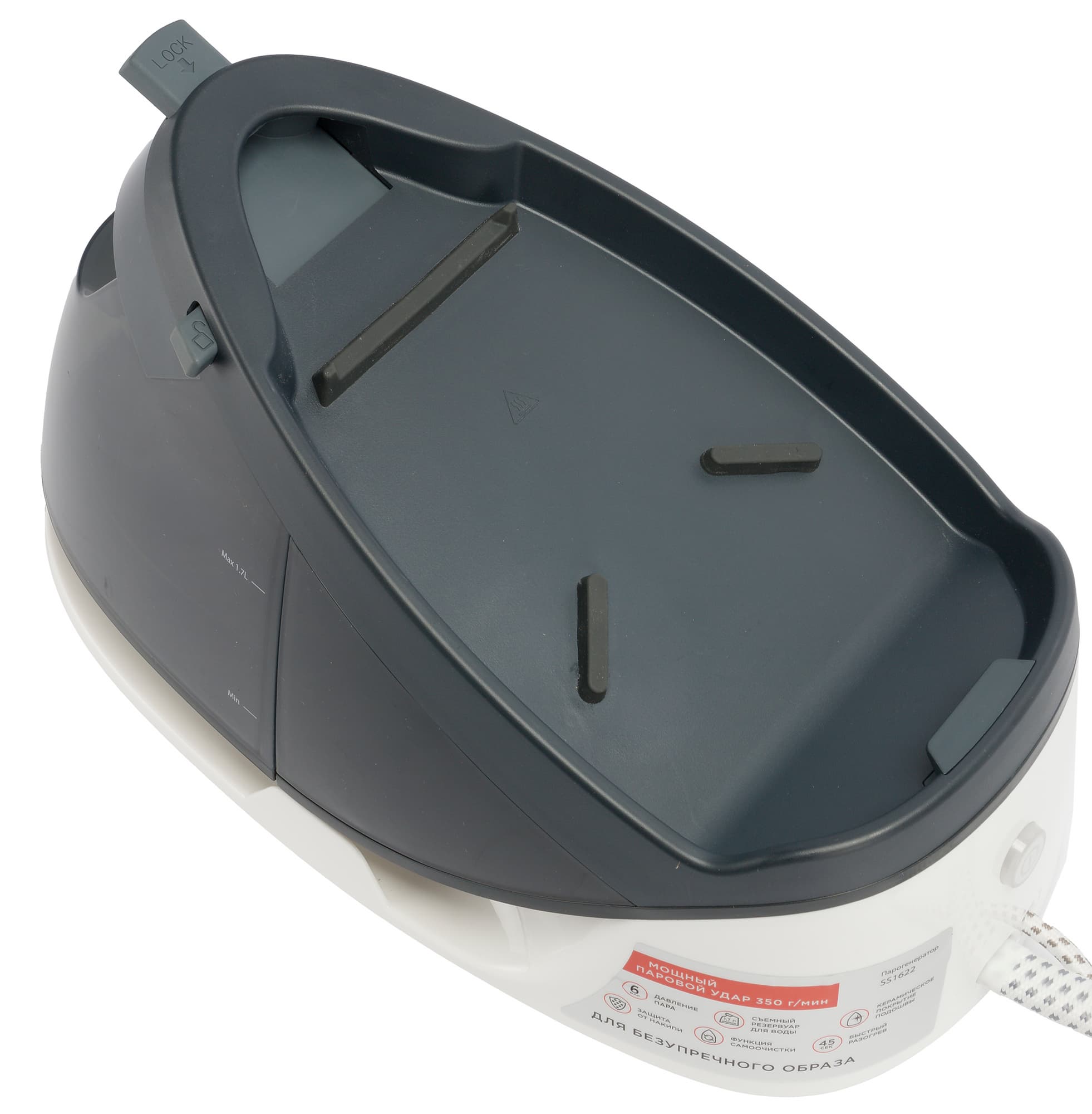 Redmond SS1622 подходит как для сухого глажения, так и для глажения с отпариванием/вертикального отпаривания. Короткий выброс пара происходит путем нажатия на кнопку с внутренней стороны ручки утюга. Для постоянной подачи пара кнопку следует нажать и удерживать. Функция мощного парового удара срабатывает при быстром двойном нажатии кнопки, использовать ее можно и вертикально, и горизонтально, в режимах средней или максимальной мощности отпаривания.