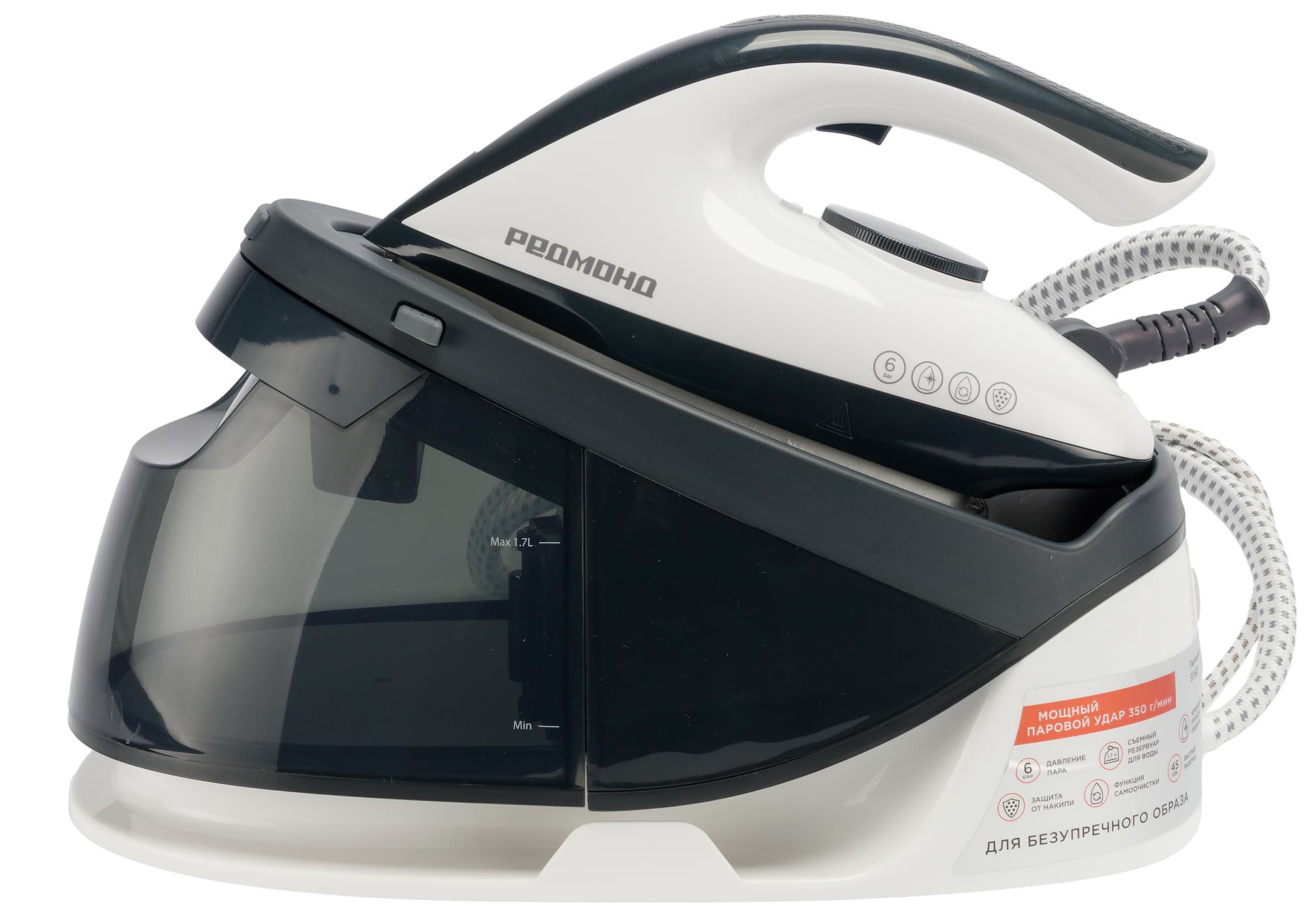 В комплект Redmond SS1623 входят: паровая станция с присоединенным к ней утюгом, съемный контейнер для воды, инструкция и гарантийный талон.