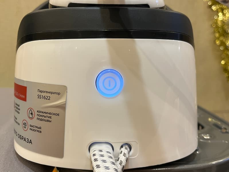 В повседневном использовании парогенератор оставил очень приятное впечатление. Начать стоит с подставки для утюга: она не просто удобная, но еще и фиксируется с помощью блокировочной кнопки. Утюг невозможно случайно сдвинуть или уронить. В реальной жизни, особенно при работе рядом с ребенком, это дает дополнительное чувство безопасности и спокойствия.