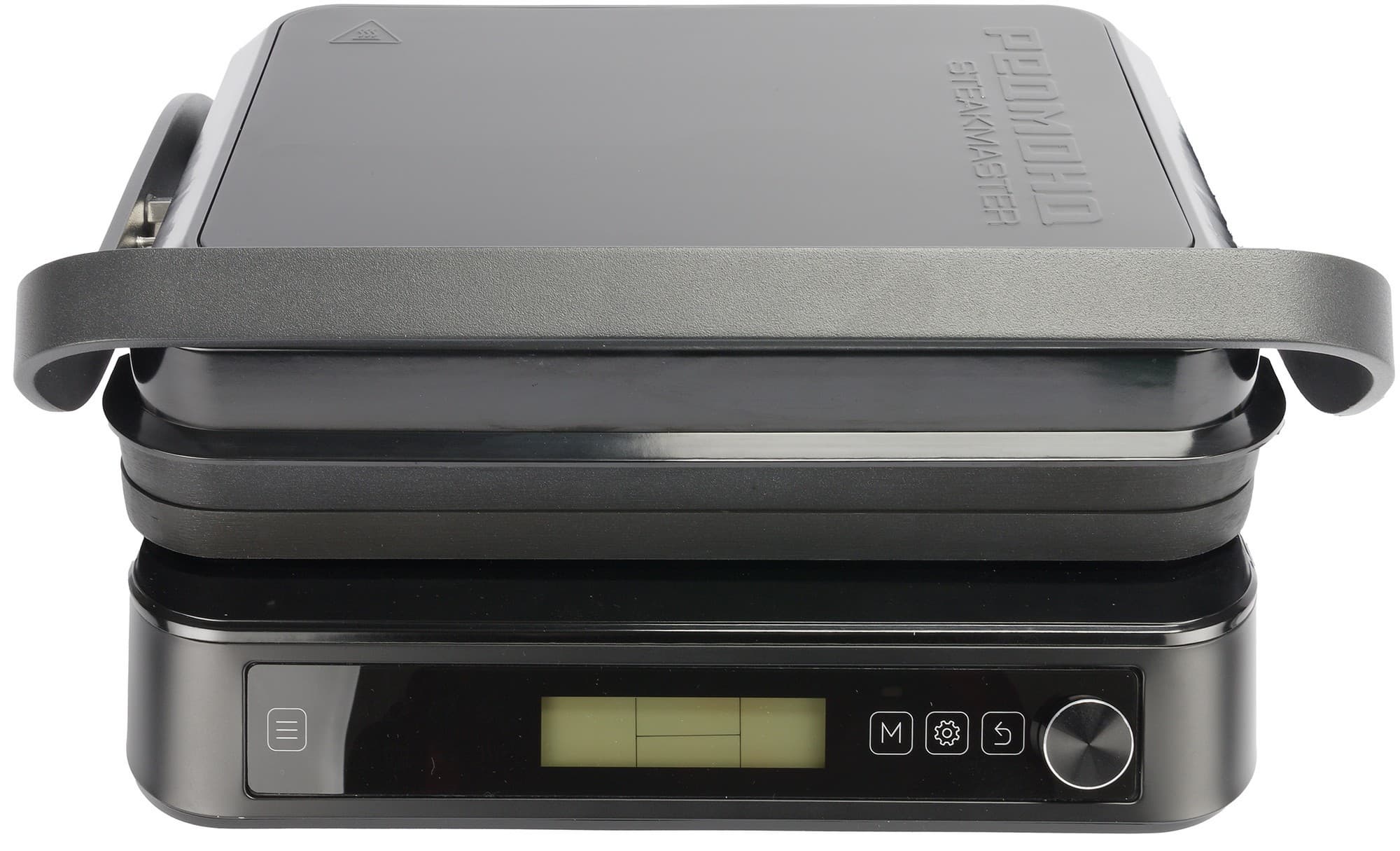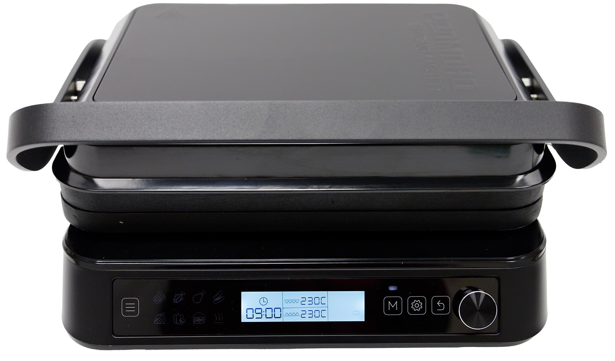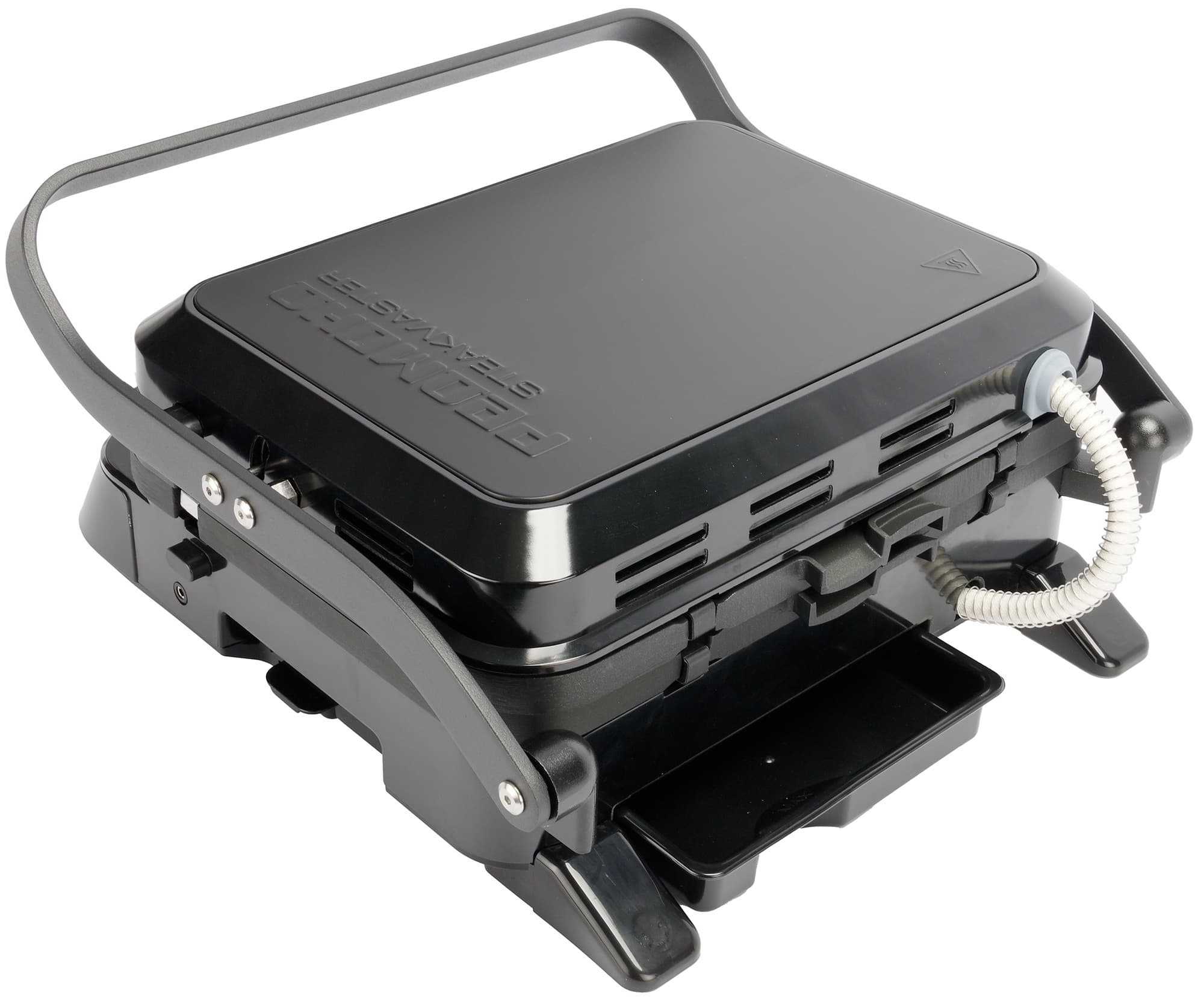 У прибора раздельная регулировка нагрева панелей, ручной режим настройки нагрева и длительности цикла, а также набор автопрограмм с адекватными предустановленными параметрами, среди которых есть специальный режим для стейков с четырьмя степенями прожарки. Кроме этого данная модель оснащена термощупом с автоотключением нагрева по достижении заданной температуры.