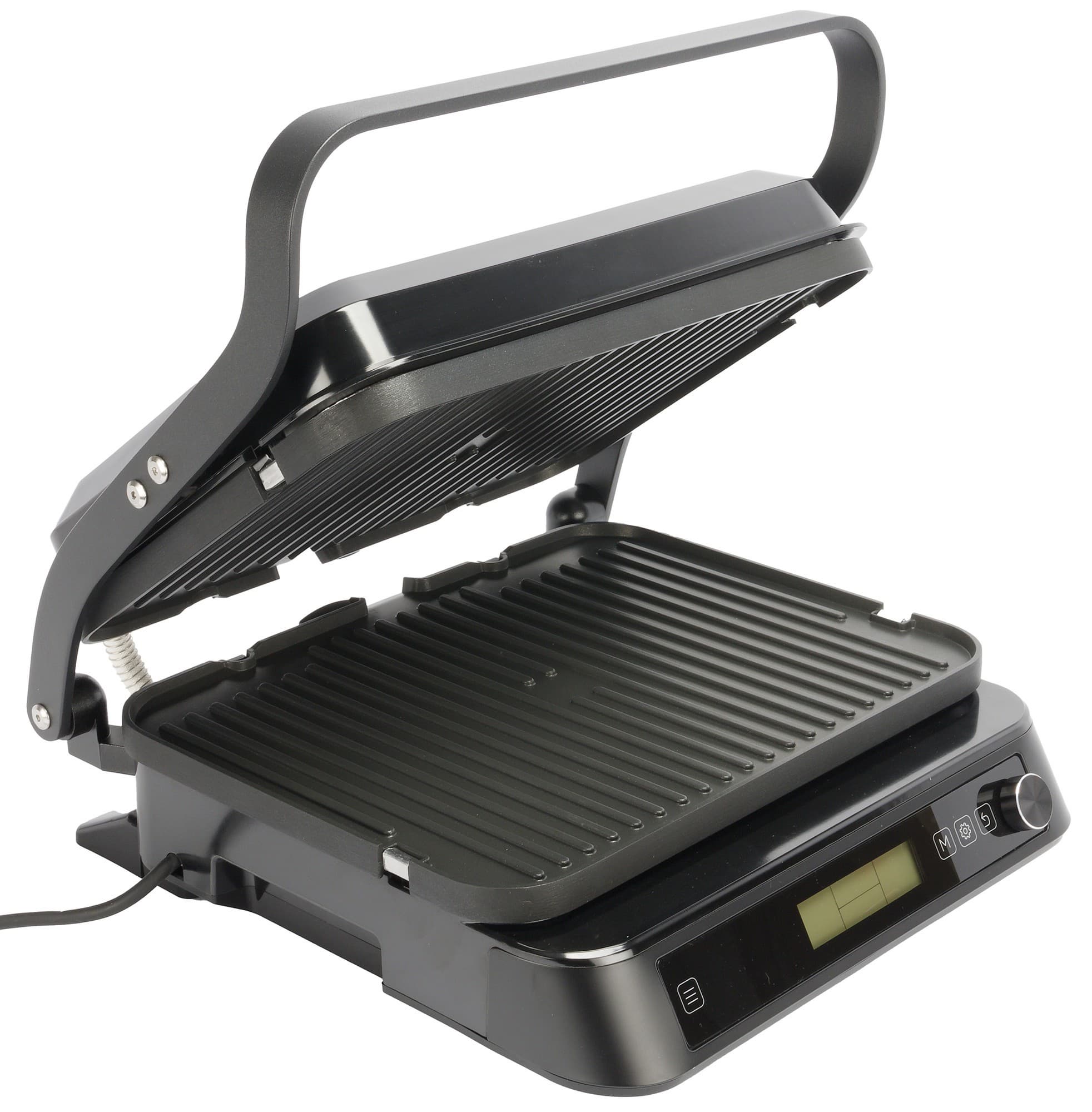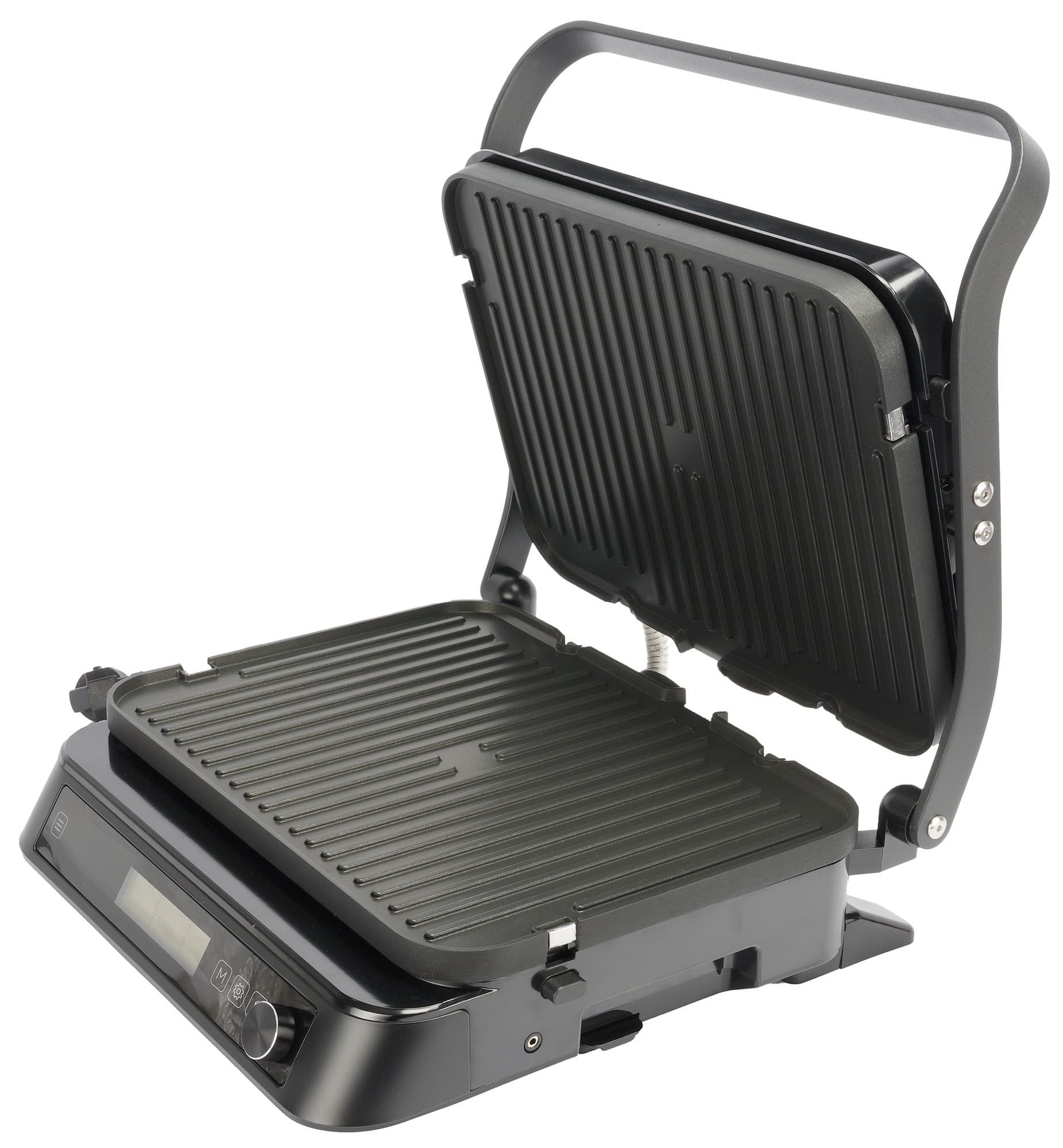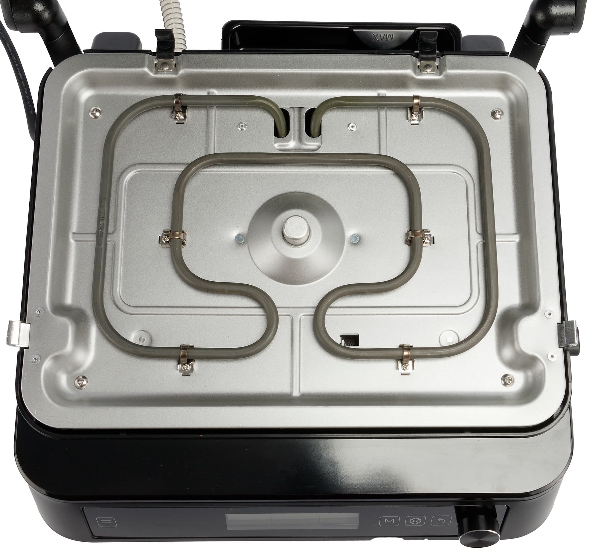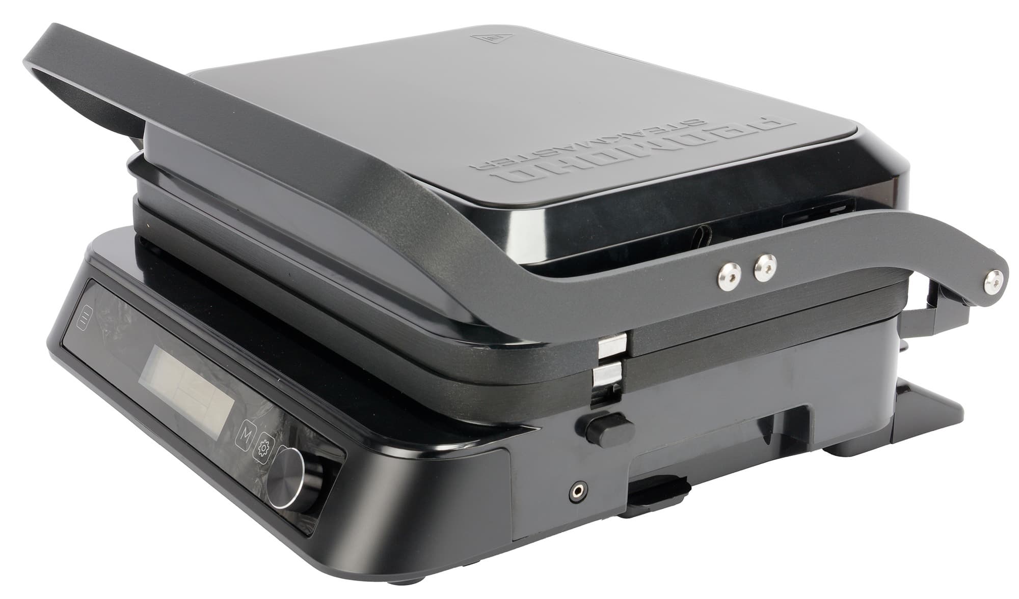 У прибора раздельная регулировка нагрева панелей, ручной режим настройки нагрева и длительности цикла, а также набор автопрограмм с адекватными предустановленными параметрами, среди которых есть специальный режим для стейков с четырьмя степенями прожарки. Кроме этого данная модель оснащена термощупом с автоотключением нагрева по достижении заданной температуры.