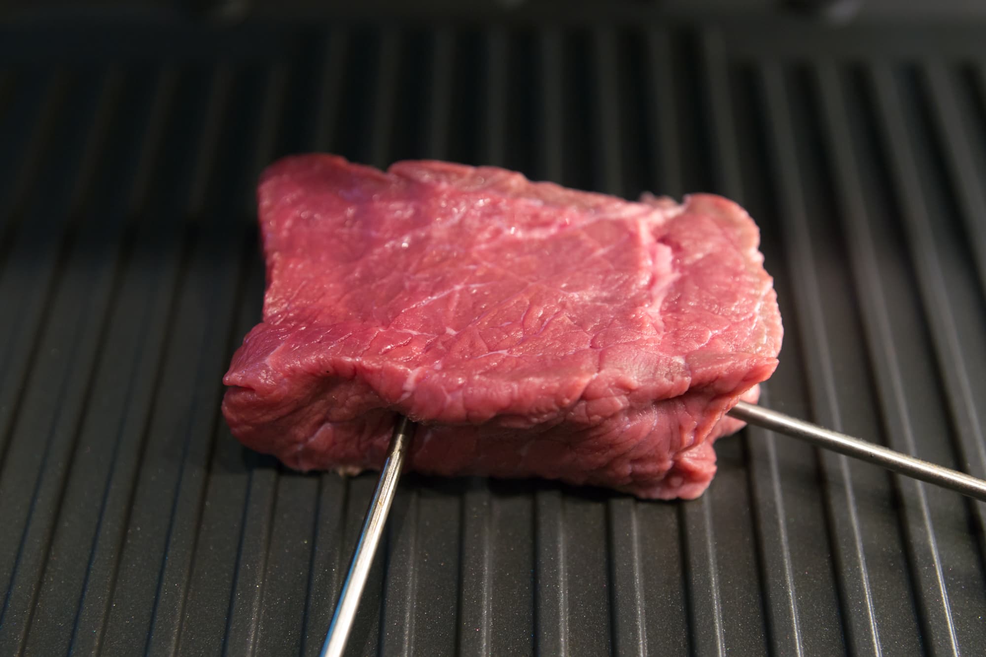 Чтобы стейки внутри остались розовыми, время приготовления ограничили тремя минутами.