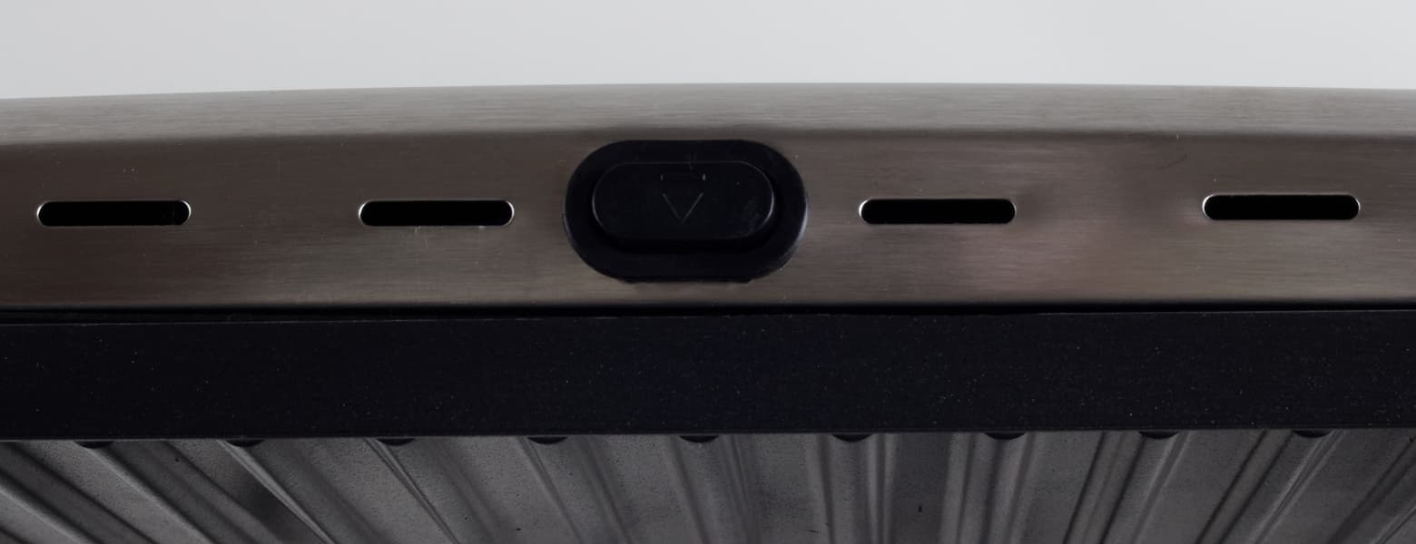 Панель расположена спереди, на слегка скошенной назад стенке. Она покрыта мягким пластиком, который делает нажимание кнопок тактильно приятным.