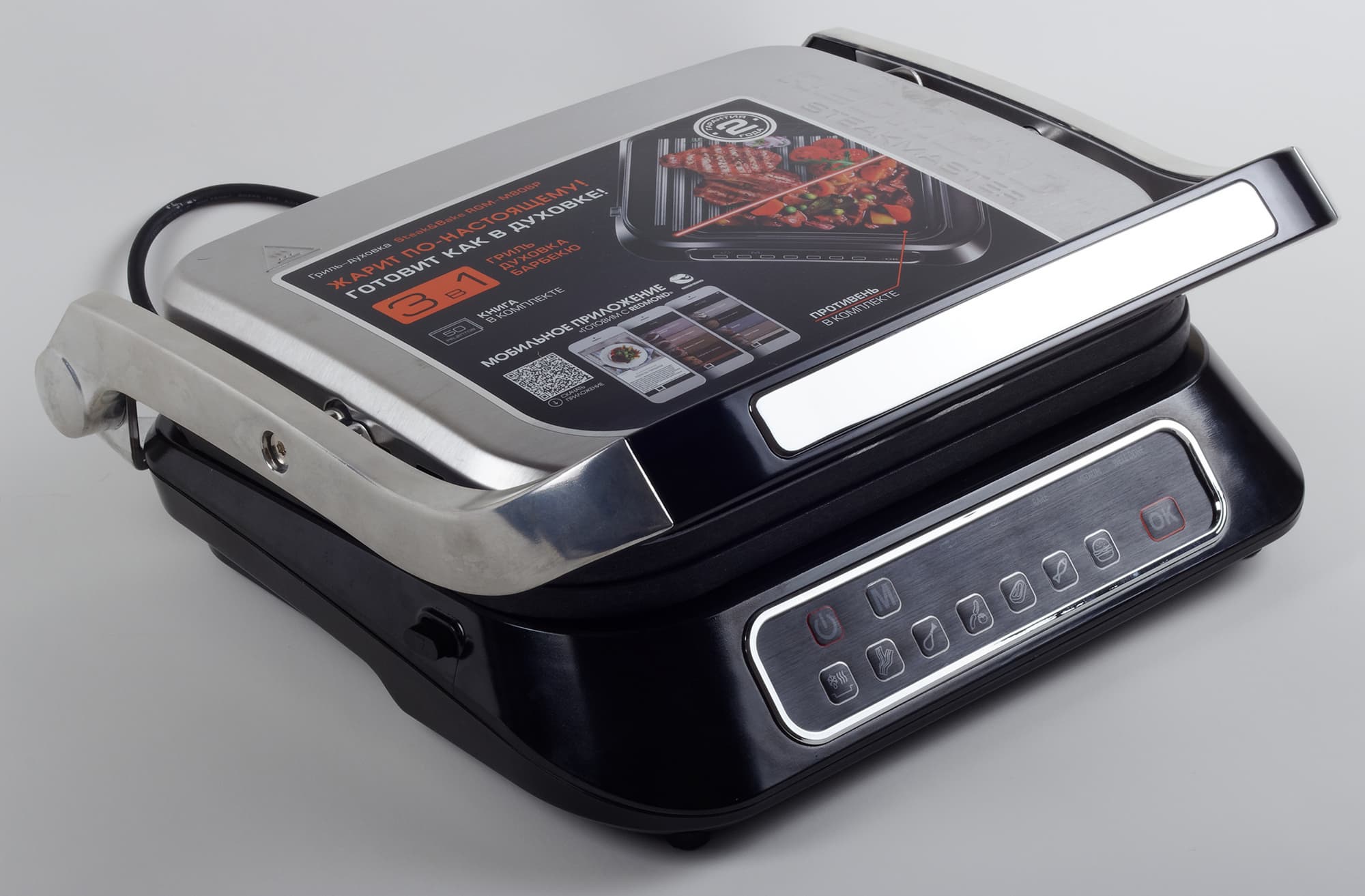 SteakMaster RGM-M806P абсолютно ничем, кроме наличия противня, не отличается от своих младших и старших соседей по модельному ряду. Точно так же он является интересным, но необязательным дополнением к современной плите с духовкой, где наверняка есть режим гриля, и довольно приятным подспорьем в домах, где духовки нет.