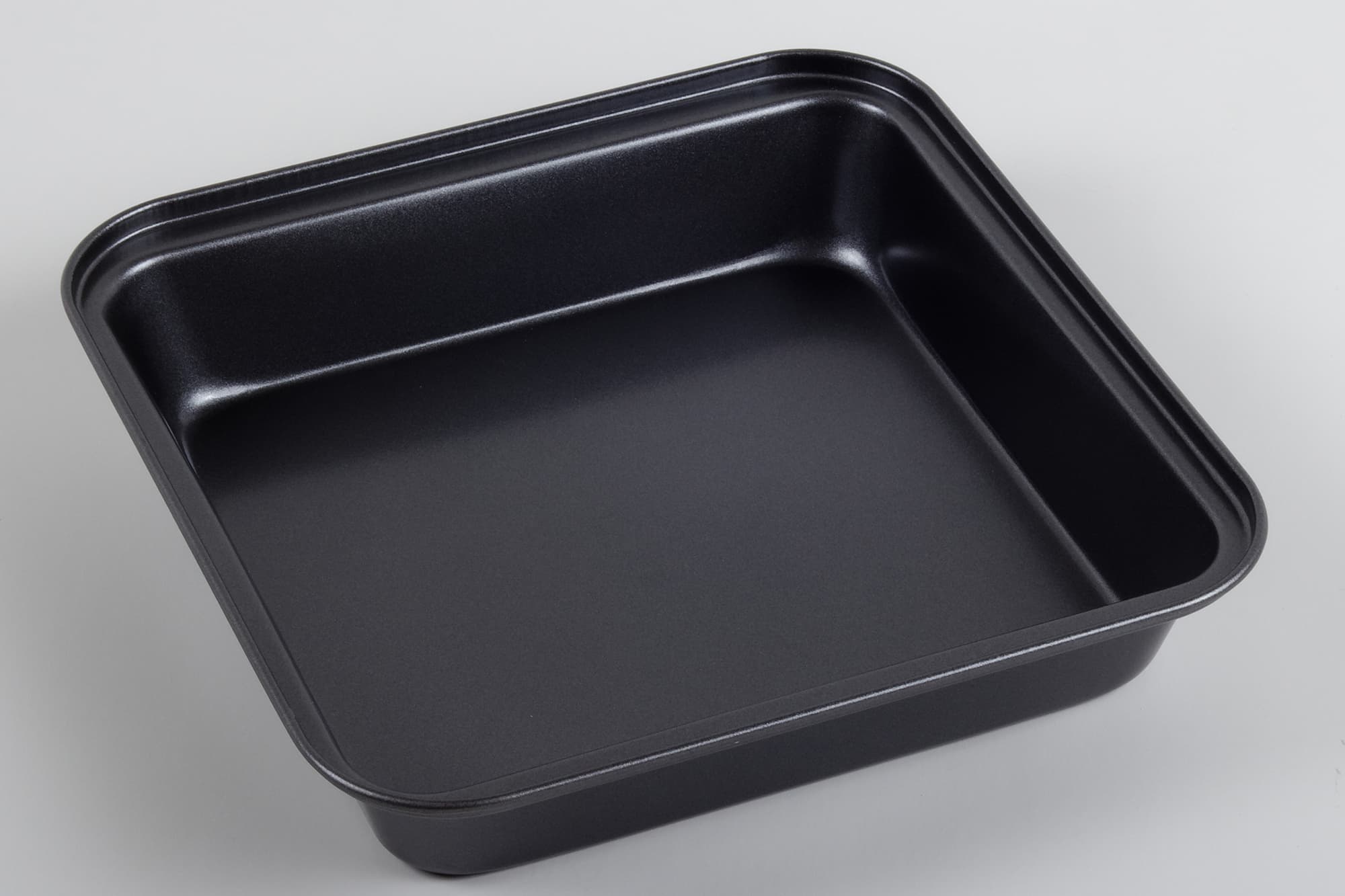 Вскрыв коробку, внутри мы обнаружили корпус гриля со съемными деталями: антипригарными жарочными поверхностями и съемным поддоном, — а также глубокий антипригарный противень.