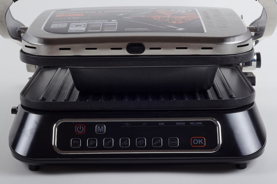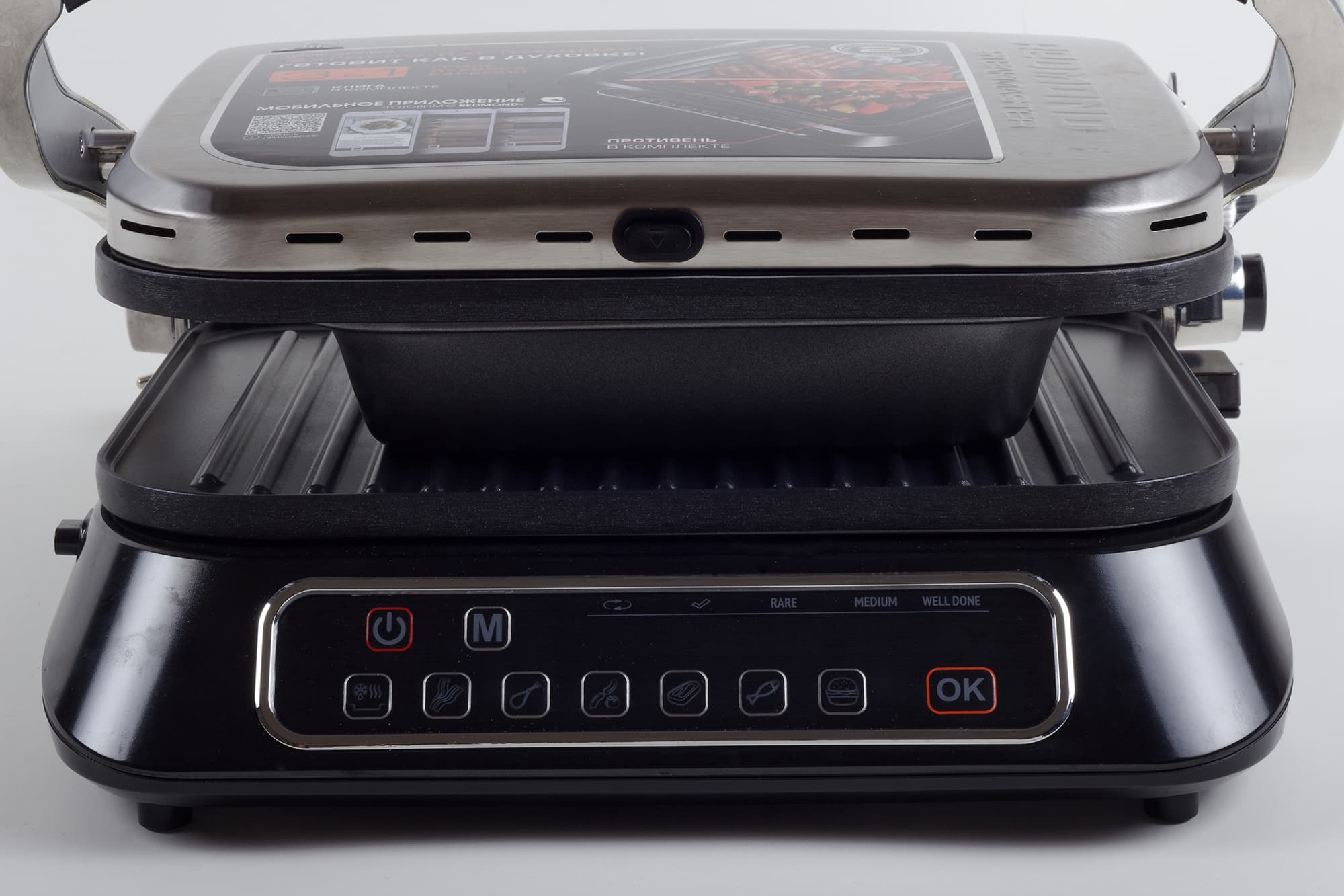 У гриля есть автоматический режим отключения, но действует он только на предустановленных режимах. Также есть автоматический режим защиты от перегрева, но довести прибор до такого состояния, чтобы он включился, мы так и не смогли.