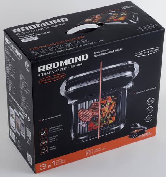 Делать домашние грили компания Redmond любит и умеет, и у нас на тестировании регулярно появляются новые модели. Вот и сейчас к нам приехал SteakMaster RGM-M806P. Мы уже рассказывали про его более старшего коллегу SteakMaster RGM-M805 и «младшего братца» SteakMaster RGM-M807, но про эту модель статьи не написали, только видеообзор. Исправляемся.