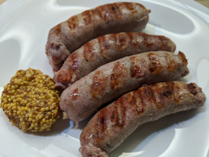 Очень простой и быстрый тест. Свеженабитые домашние колбаски были положены на гриль и в режиме жарки колбас обжарены в режиме well done. Первая порция оказалась прекрасна, но слегка, на наш вкус, пересушена, поэтому для второй порции мы выбрали medium.