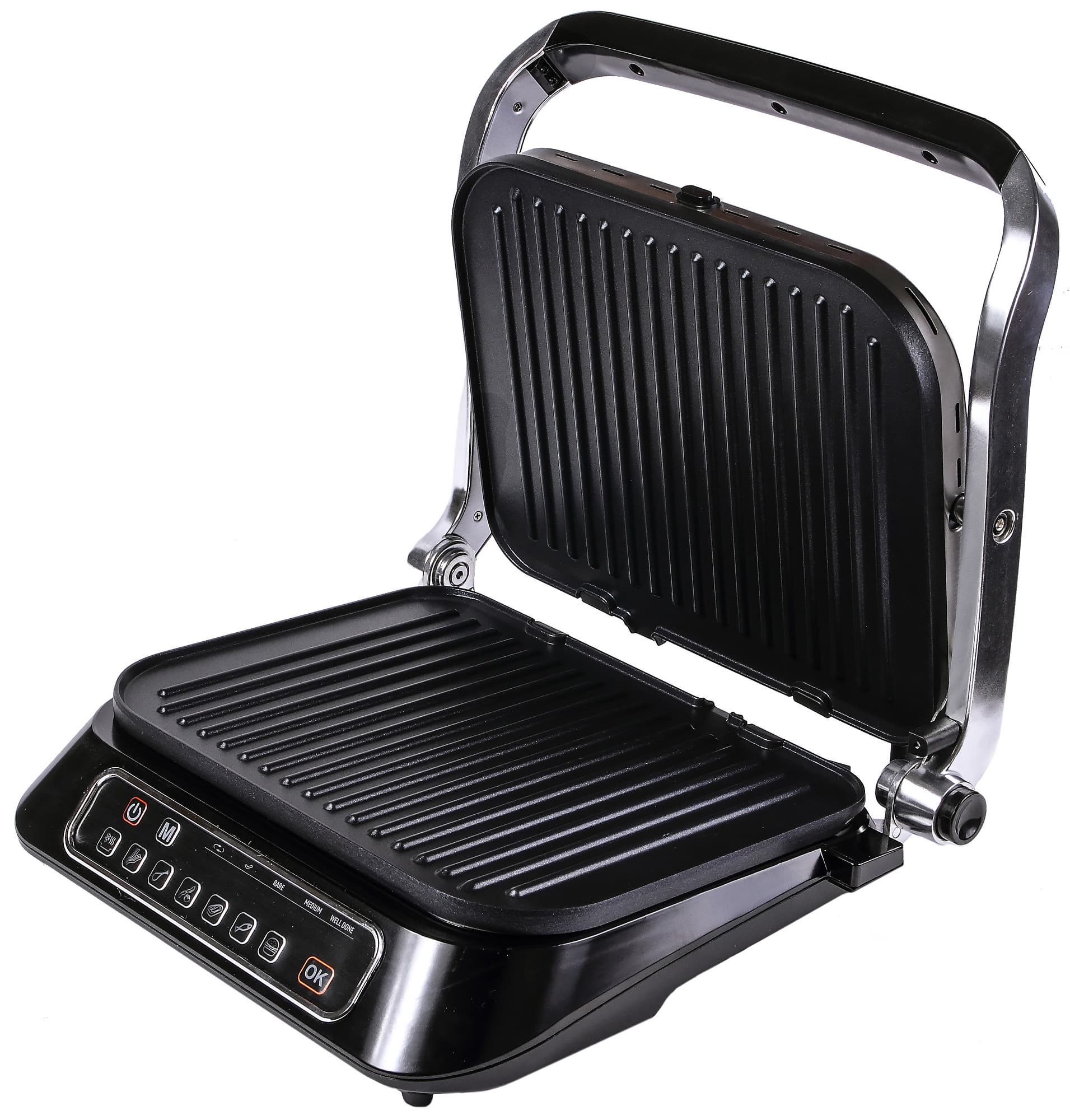 У гриля есть автоматический режим отключения, но действует он только на предустановленных режимах. Также есть автоматический режим защиты от перегрева, но довести прибор до такого мы так и не смогли.