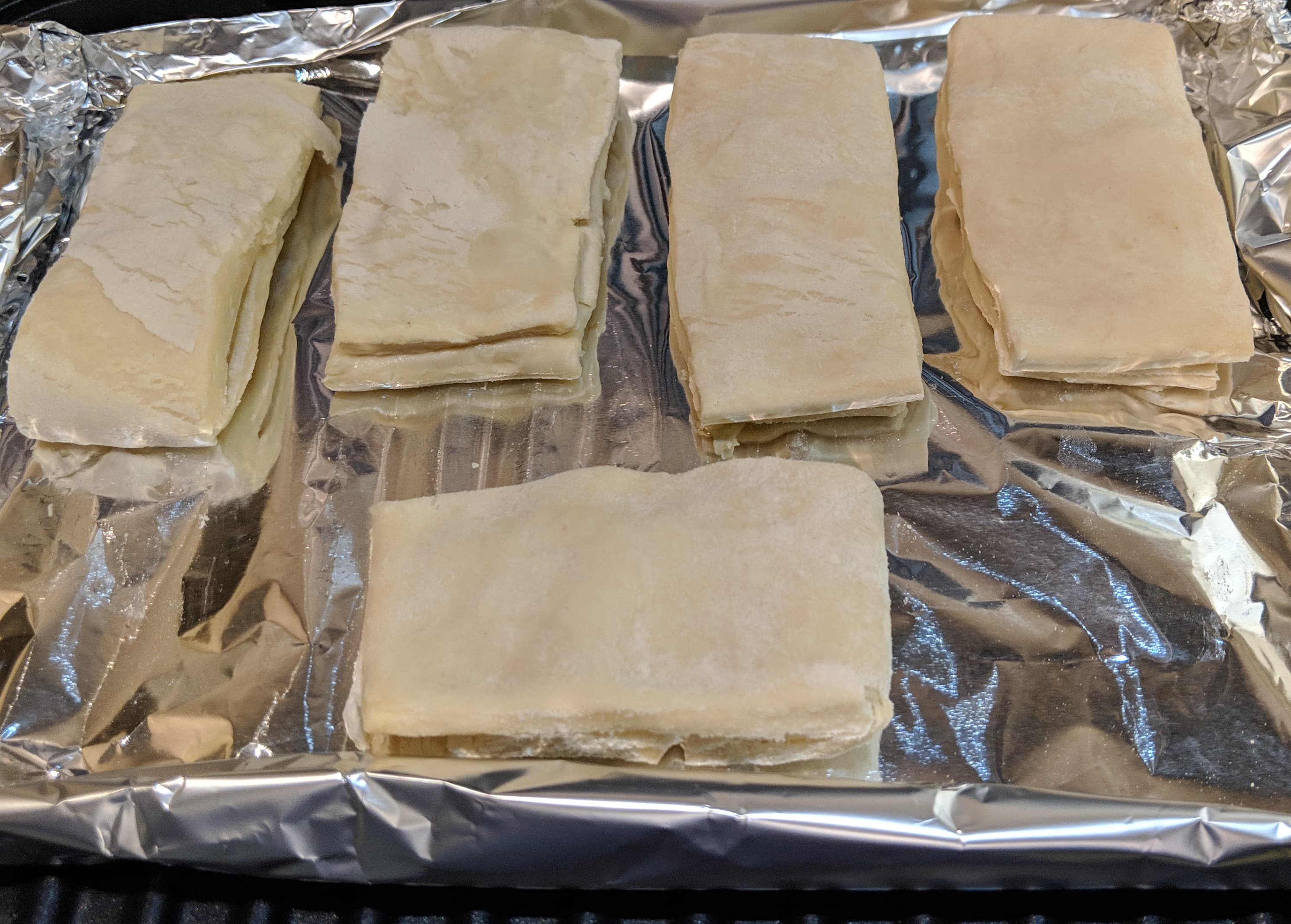 Итак, мы пекли пироги. В книге рецептов есть несколько вариаций на эту тему, и все они начинаются с «возьмите готовое слоеное тесто». Поэтому разморозим тесто (при комнатной температуре — это специально подчеркивается в рецепте) и раскатаем его не слишком тонко.