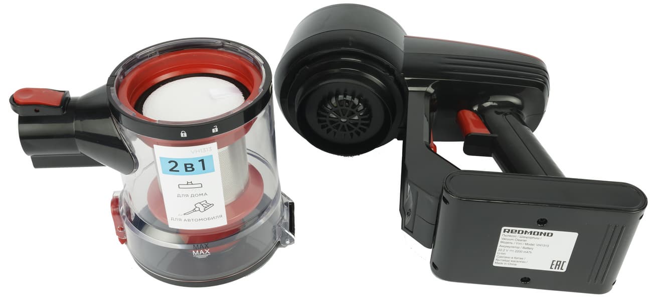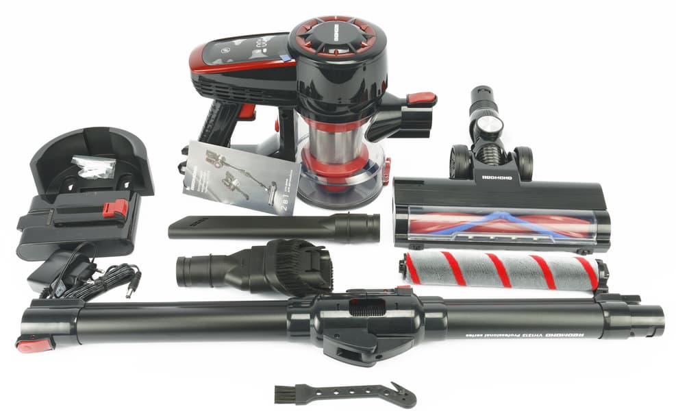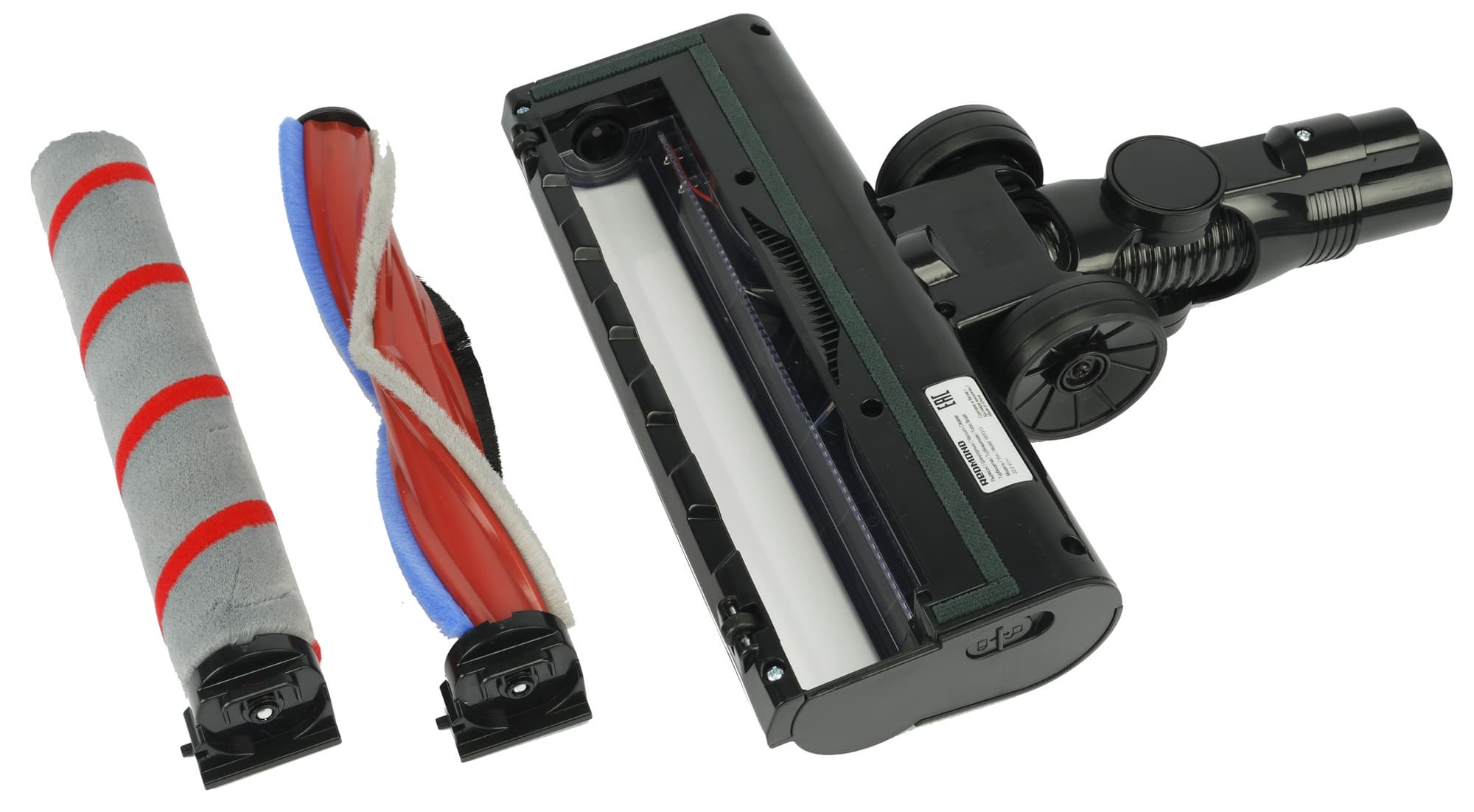 Комплектация у Redmond VH1313 не слишком богатая: с пылесосом поставляются три насадки (моторизованная и две неэлектрифицированных). Ее можно было бы назвать спартанской, если бы не дополнительный ротор, предназначенный для чистки твердых поверхностей (универсальная щетка уже установлена). Каких-либо расходных материалов (к примеру, дополнительного фильтра) мы не обнаружили.