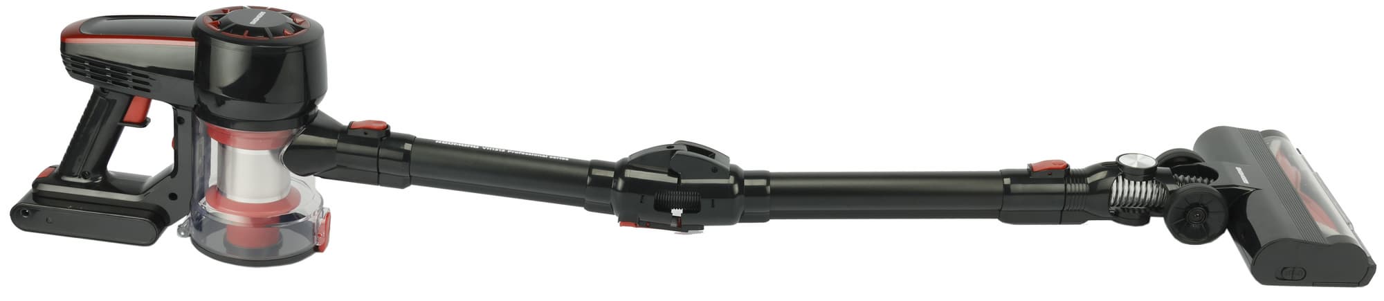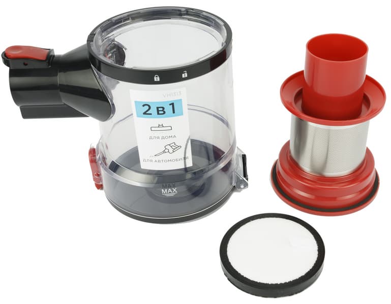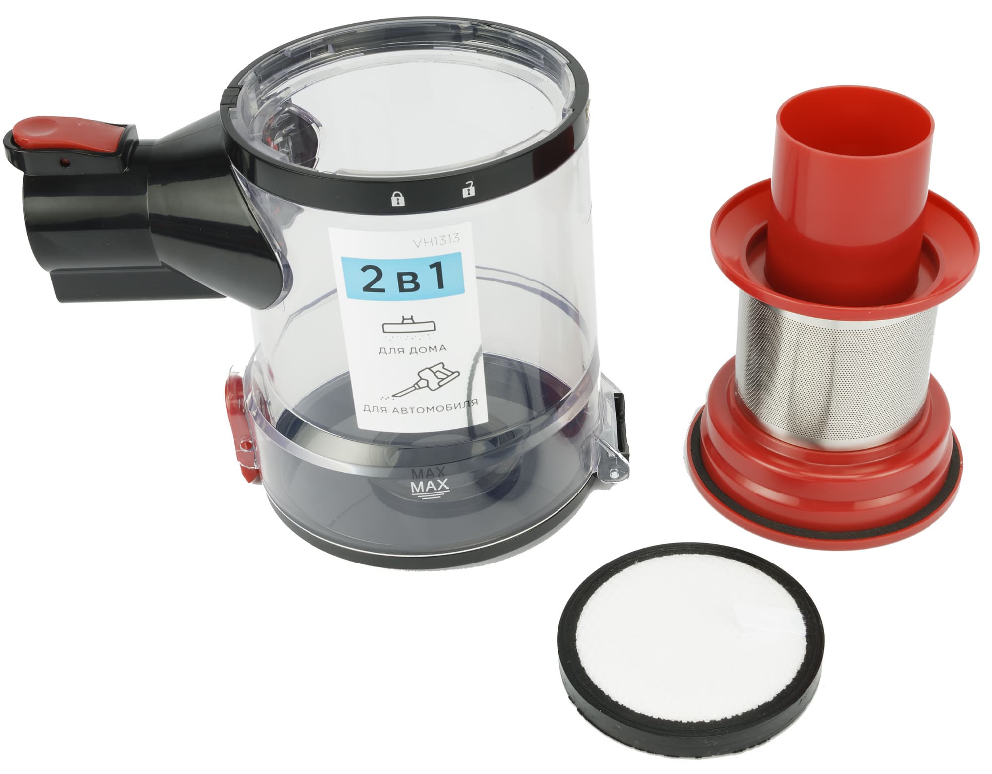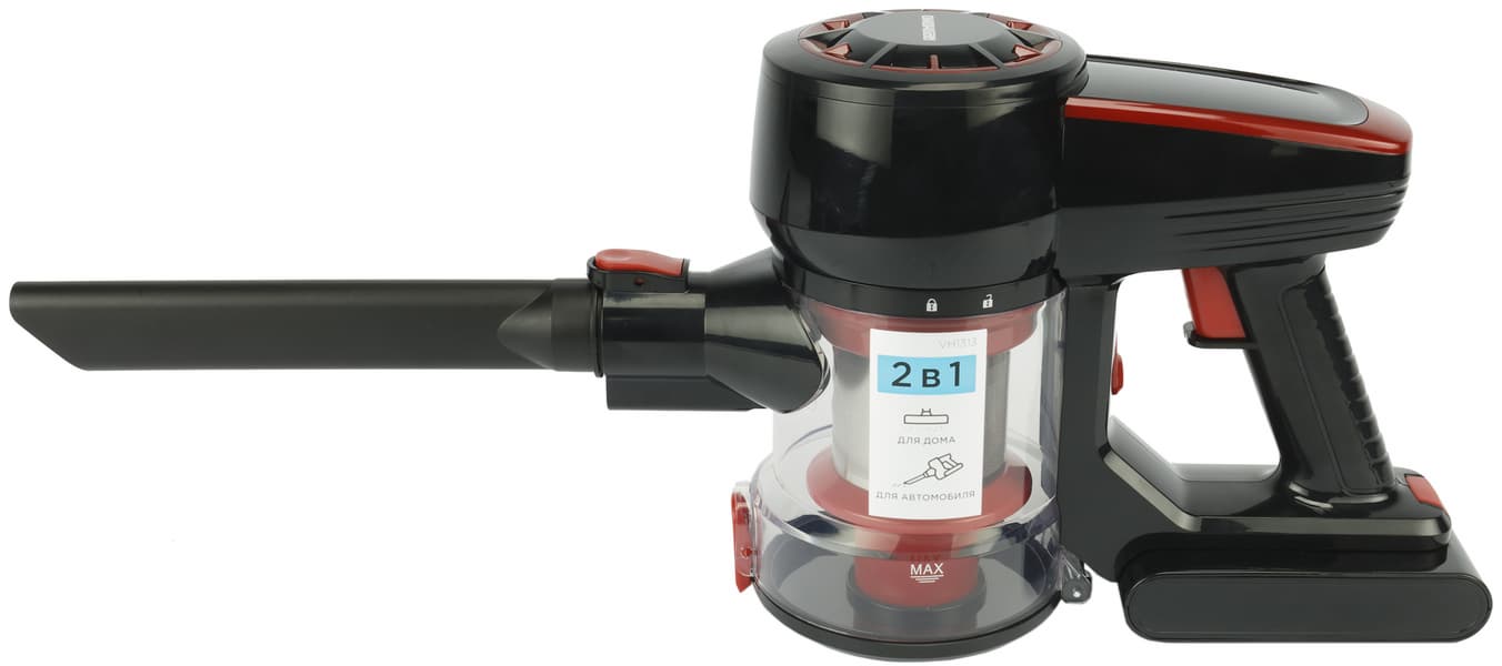 В максимальной конфигурации (основной блок, аккумулятор, удлинительная трубка и насадка для пола) пылесос весит 2320 г, а в минимальной — 1485 г.