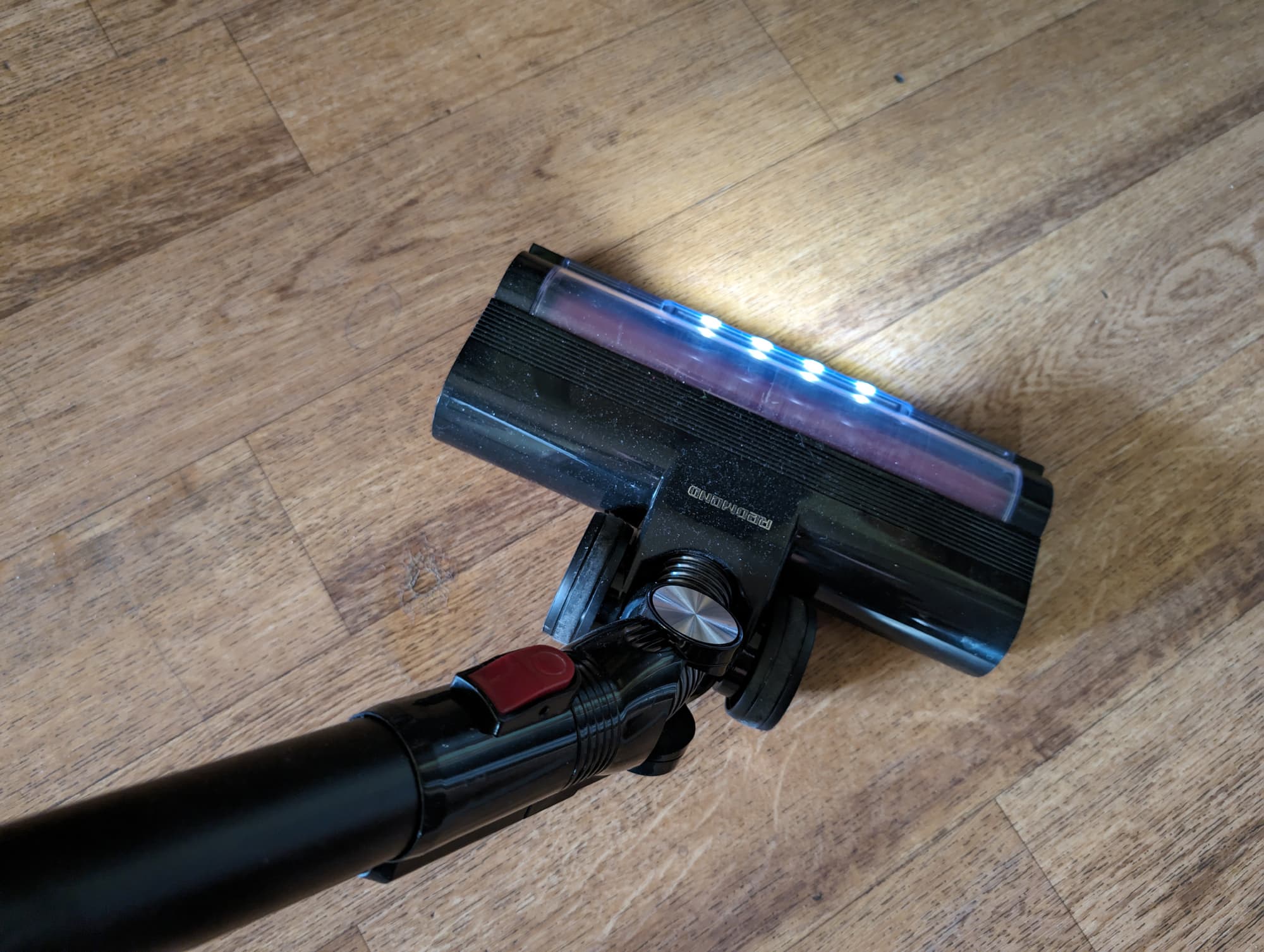 Эффективность подметания пола существенно повышают складная удлинительная трубка и подсветка рабочей зоны.