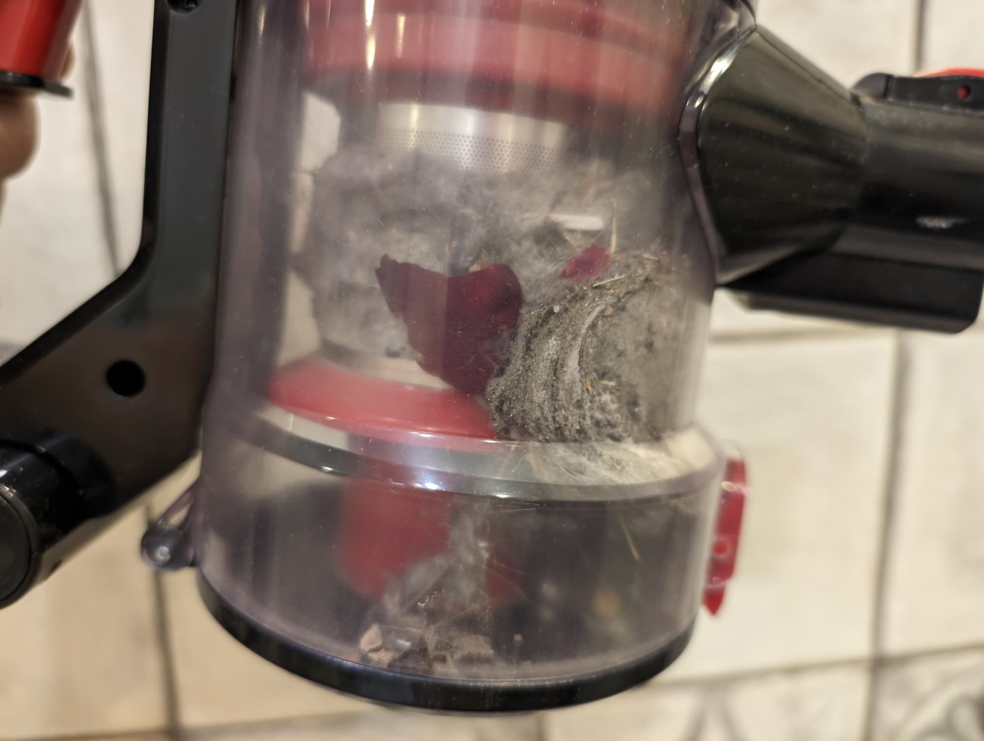 Сквозь прозрачные стенки мусоросборника легко контролировать его заполнение. Это тем более полезно, что никакого оповещения о переполнении контейнера (как и о засорении воздушных трактов) у этой модели нет.